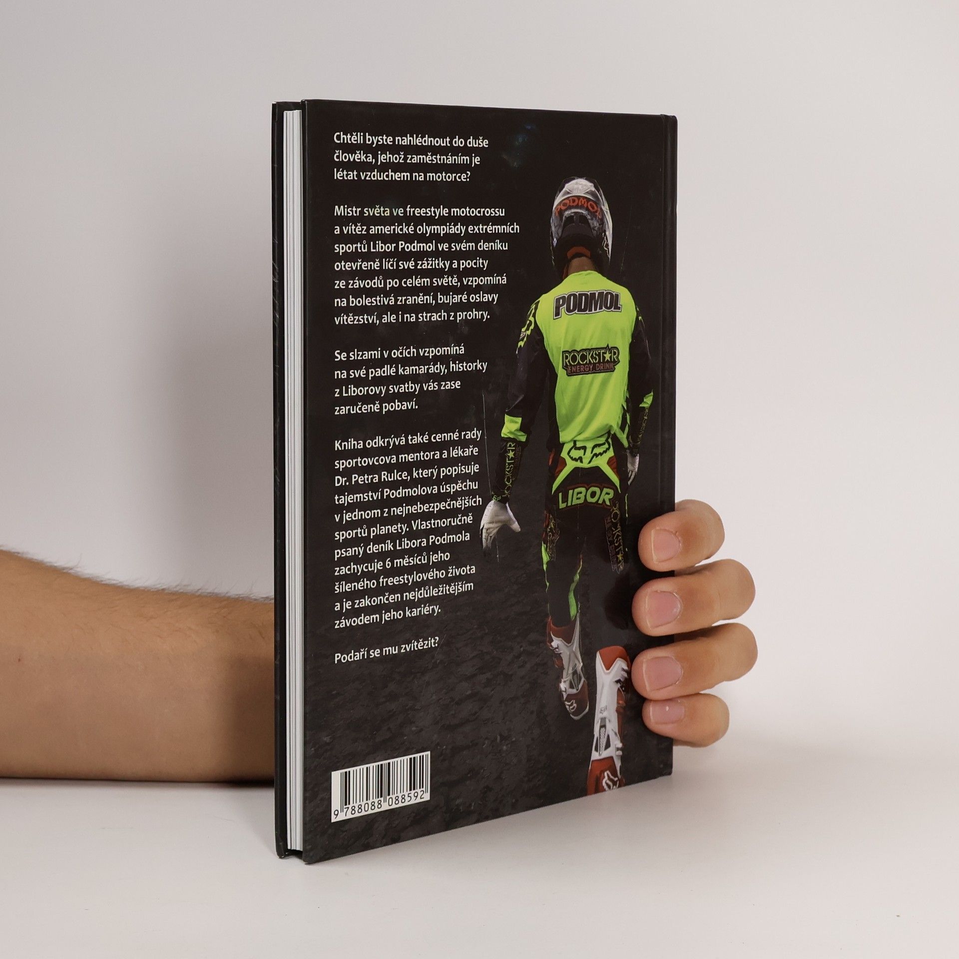 Mistr světa ve Freestyle Motocrossu a vítěz Americké olympiády extrémních sportů ve svém deníku otevřeně popisuje vlastní pocity ze závodů po celém světě, bolestivých zranění, bujarých oslav vítězství, ale i strachu z proher. Nakladatelská anotace. Kráceno. Vlastnoručně psaný deník Libora Podmola zachycuje 6 měsíců jeho šíleného freestylového života a je zakončen nejdůležitějším závodem jeho kariéry. varianta názvu - Deník Libora Podmola