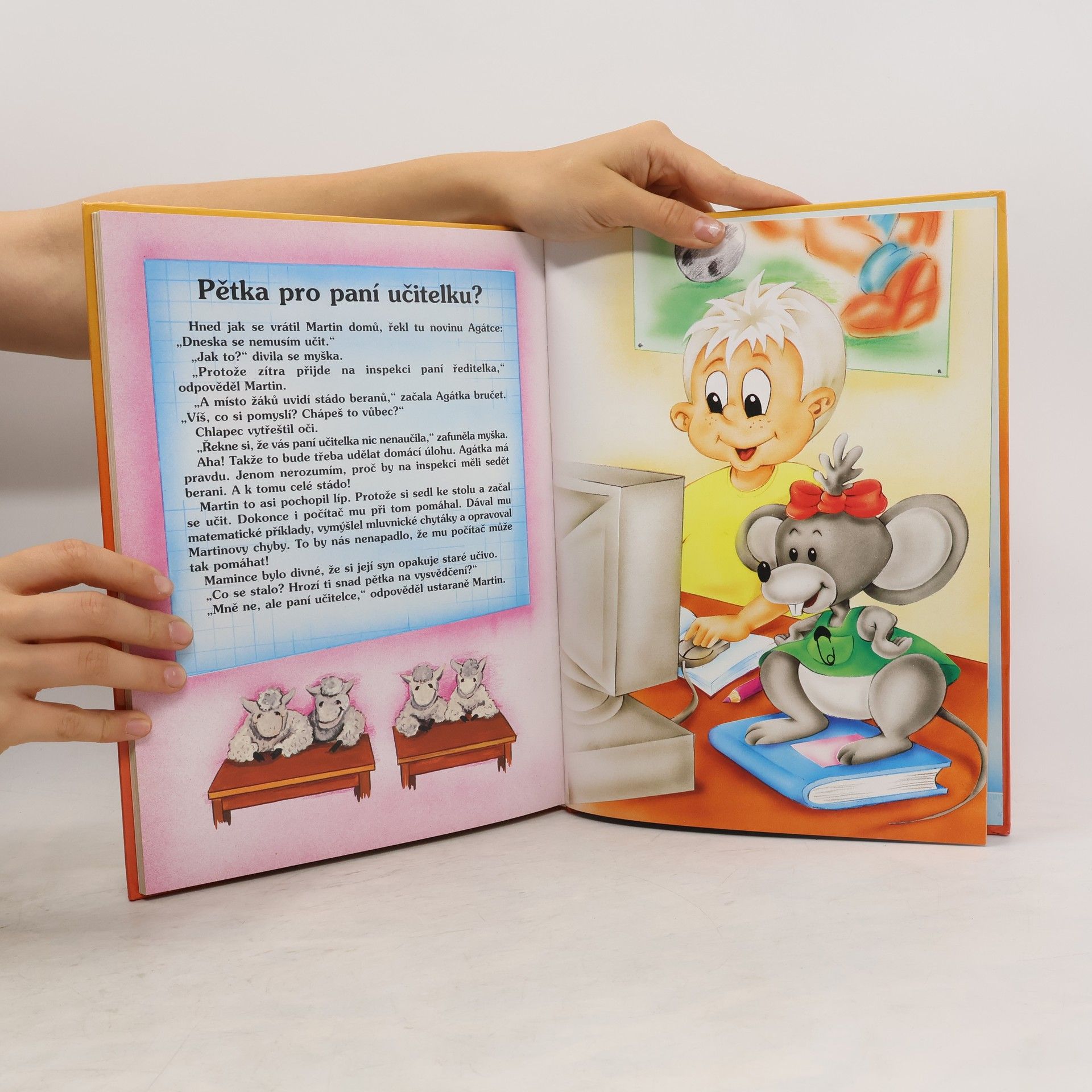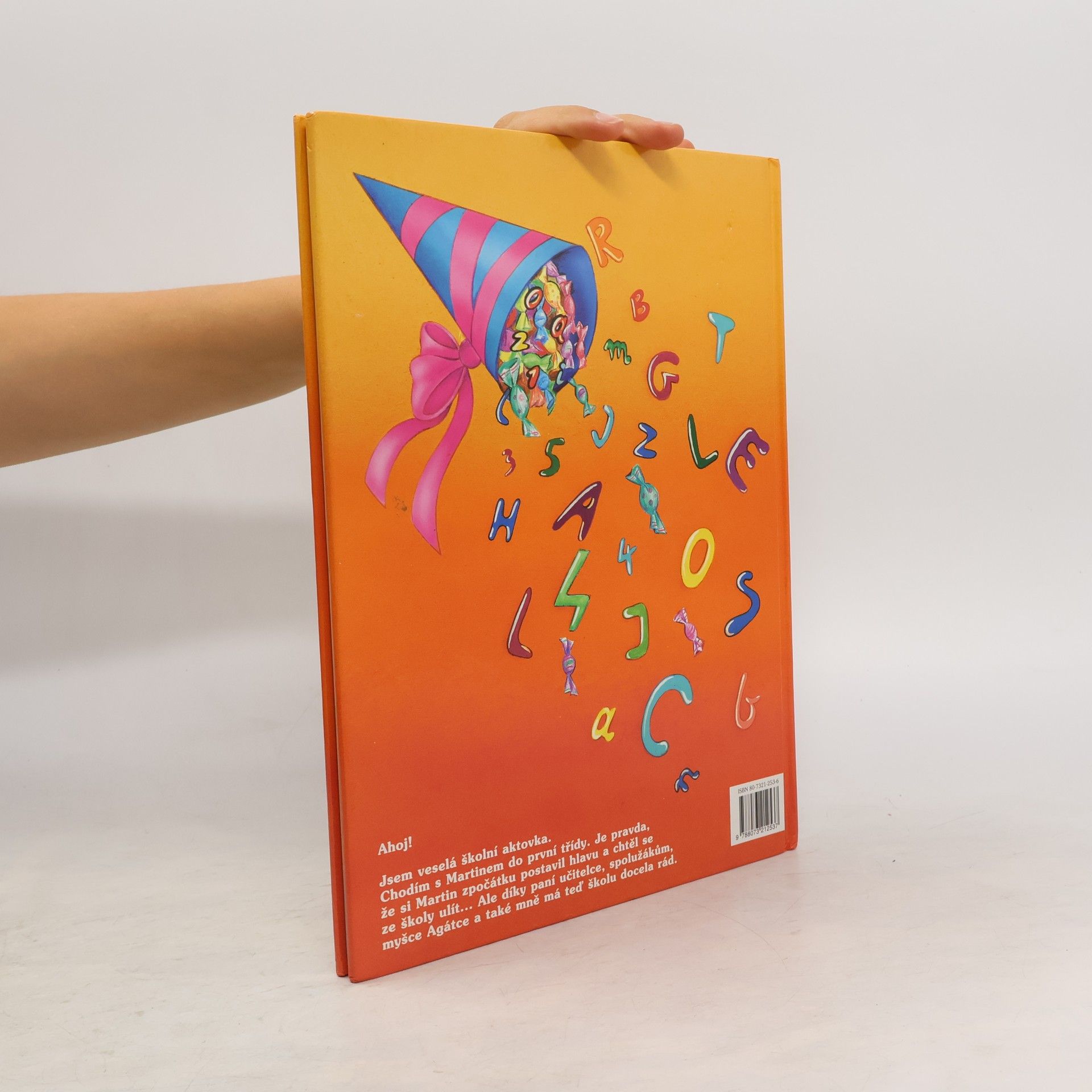 Ahoj! Jsem veselá školní aktovka. Chodím s Martinem do první tŕídy. Je pravda, že si Martin zpočátku postavil hlavu a chtěl se ze školy ulít... Ale díky paní učitelce, spolužákům, myšce Agátce a také mně má teď školu docela rád.