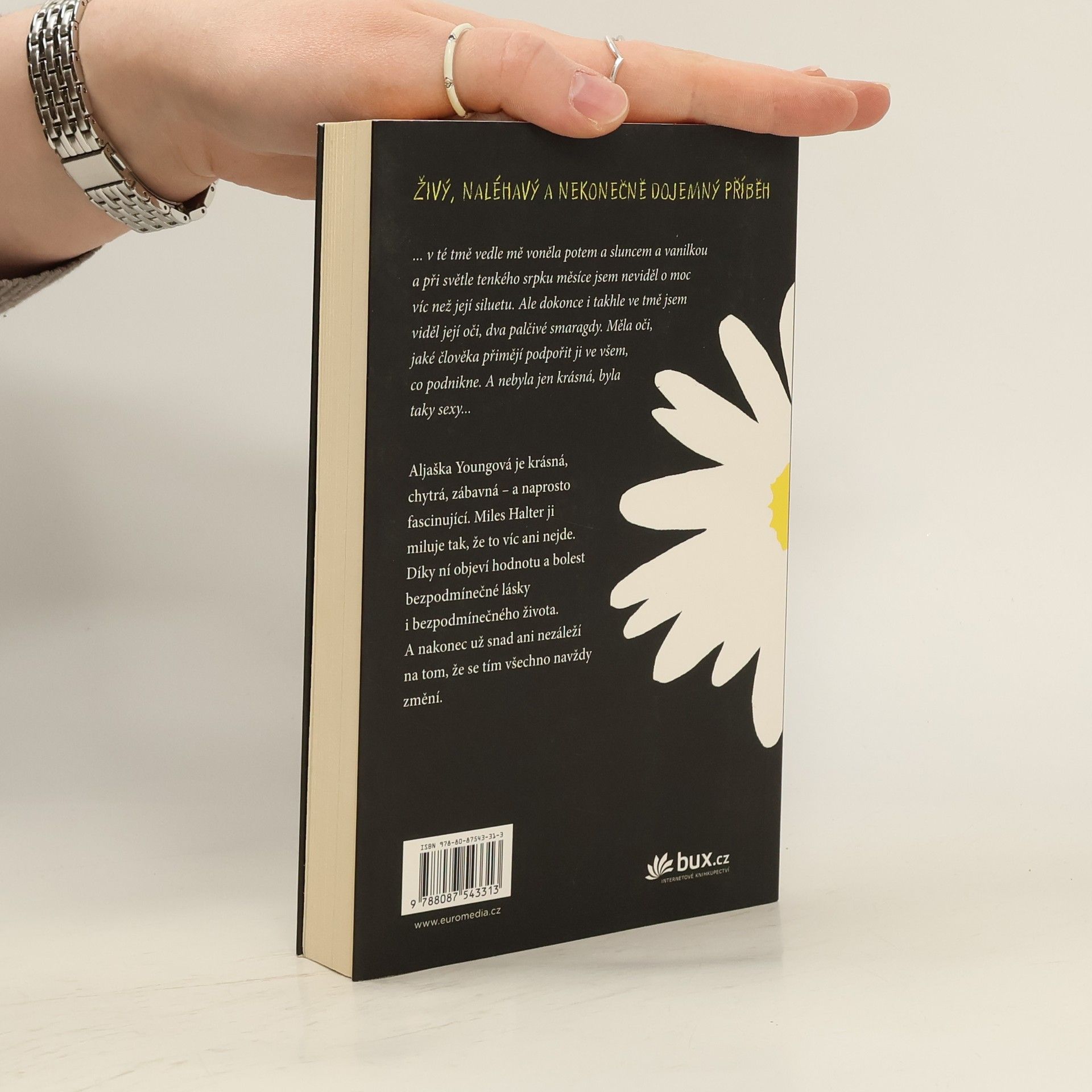Románový debut dnes už známého Johna Greena je strhujícím vyprávěním o dospívání a hledání sama sebe. Šestnáctiletý Miles, posedlý sbíráním posledních slov významných osobností a touhou hledat „velké Možná“, je spíše outsiderem mezi svými vrstevníky. Jeho život získá zcela novou podobu, když přejde na internátní školu Culver Creek. Zde se rychle spřátelí se svérázným spolubydlícím a okouzlující, naprosto nepředvídatelnou Aljaškou Youngovou. Okamžitě je vtažen do světa, kde se porušují školní pravidla, pořádají různé večírky i provokace. Miles ožívá v dennodenním kontaktu s novými kamarády a stále víc miluje fascinující Aljašku. A tak vývoj směřuje k okamžiku, kdy se všechno nečekaně navždy změní... Živý, naléhavý a nekonečně dojemný příběh. Americkou knihovnickou asociací byl zařazen mezi deset nejlepších knih pro dospívající.