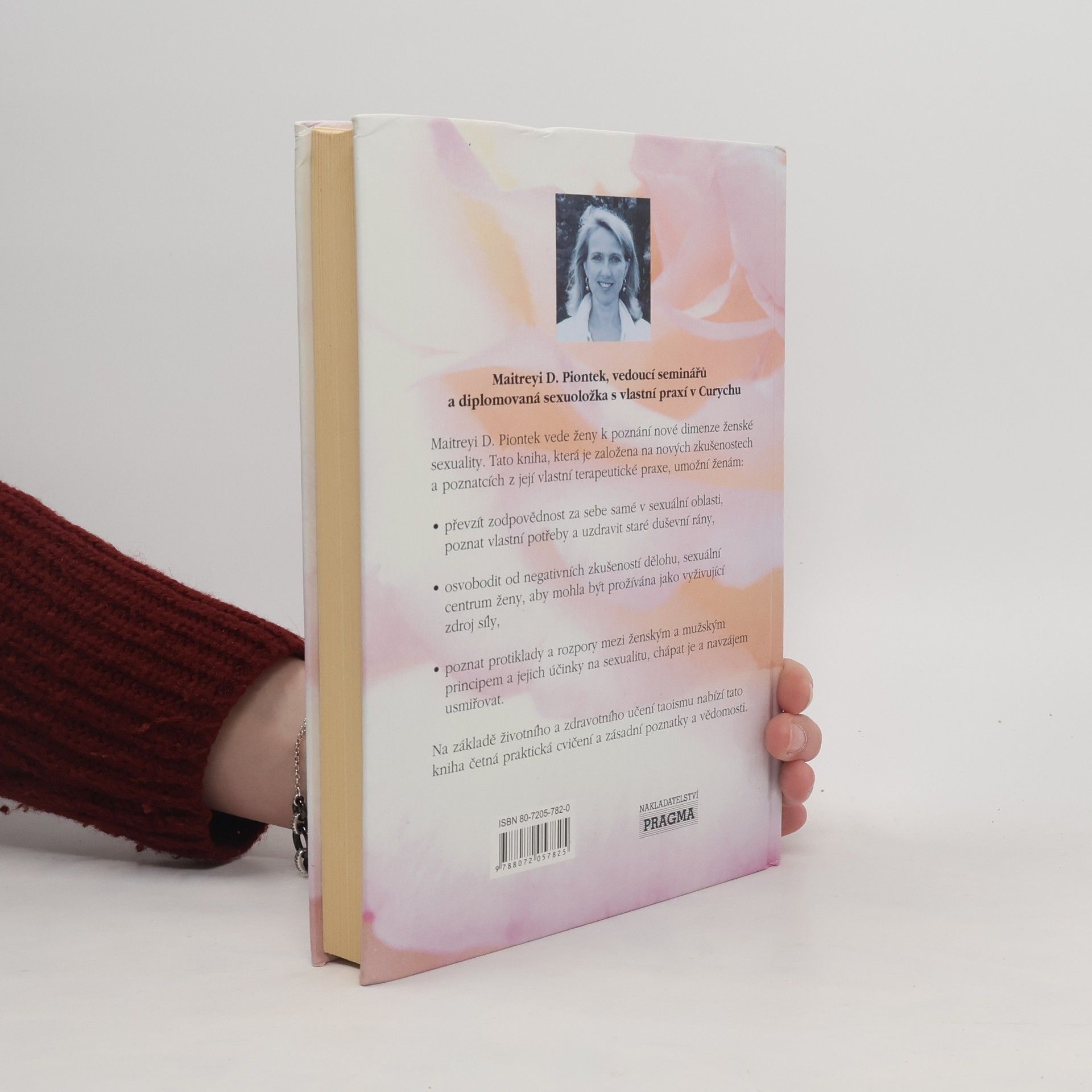 Maitreyi D. Piontek, vedoucí seminářů a diplomovaná sexuoložka s vlastní praxí v Curychu. Maitreyi D. Piontek vede ženy k poznání nové dimenze ženské sexuality. Tato kniha, která je založena na nových zkušenostech a poznatcích z její vlastní terapeutické praxe, umožní ženám: • převzít zodpovědnost za sebe samé v sexuální oblasti, poznat vlastní potřeby a uzdravit staré duševní rány, • osvobodit od negativních zkušeností dělohu, sexuální centrum ženy, aby mohla být prožívána jako vyživující zdroj síly, • poznat protiklady a rozpory mezi ženským a mužským principem a jejich účinky na sexualitu, chápat je a navzájem usmiřovat. Na základě životního a zdravotního učení taoismu nabízí tato kniha četná praktická cvičení a zásadní poznatky a vědomosti.... celý text