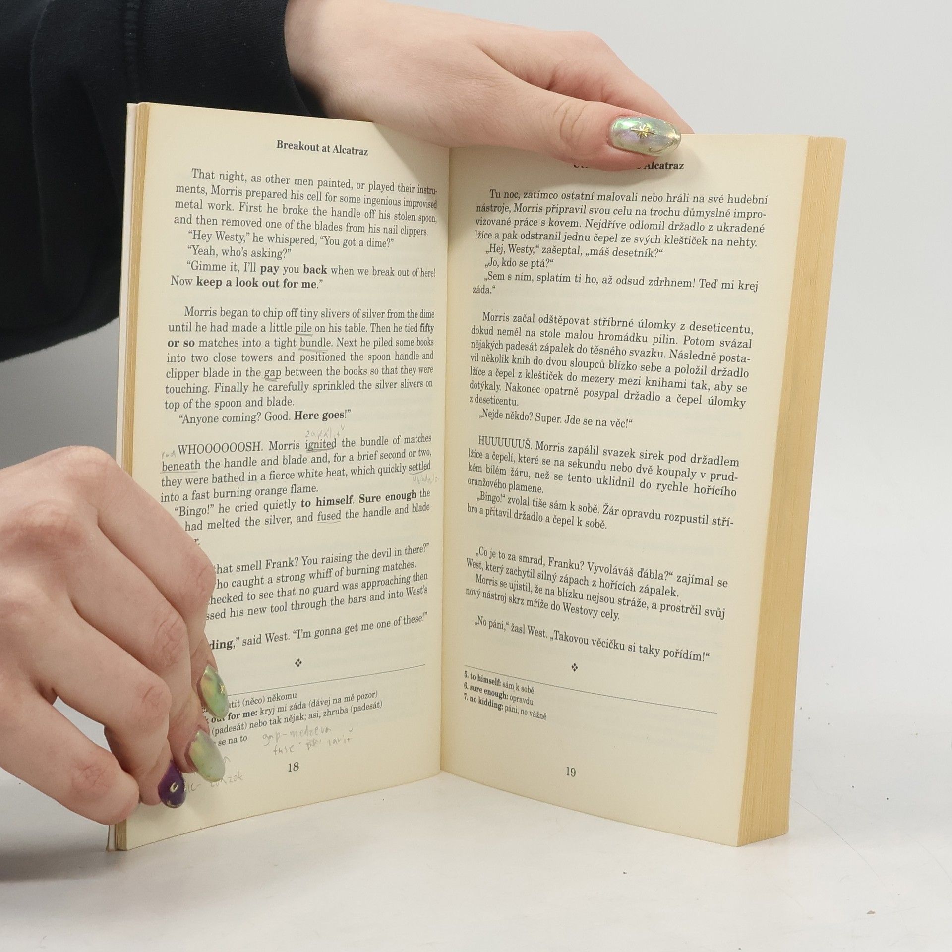 Zrcadlový text vám přináší napínavý příběh jak v českém tak anglickém jazyce – na levé straně knihy je původní text, na pravé jeho překlad do češtiny. Ideální čtení nejen na dovolenou, u kterého se pobavíte, ale navíc se procvičíte v angličtině! Klasický příběh je převyprávěn pro dnešní čtenáře, s využitím běžné angličtiny. Pravdivé příběhy Vás pak zavedou do míst, kde jde o boj o přežití a někdy nezbývá nic jiného než útěk. Text je navíc doplněn užitečnými poznámkami pod čarou, které čtenáře upozorní na důležitá anglická slovní spojení. Doporučujeme všem mírně pokročilým k procvičení pochopení anglického textu. Povídky: Útěk z Alcatrazu, Alias Ivan Bagerov, Špión ve křoví, Umouněný dokař, Útěk nebo smrt, Deset zamčených dveří (a jak je odemknout), Mussoliniho útěk z hor, Není úniku z Ďábelského ostrova. ISBN 80-7240-455-5 je chybné
