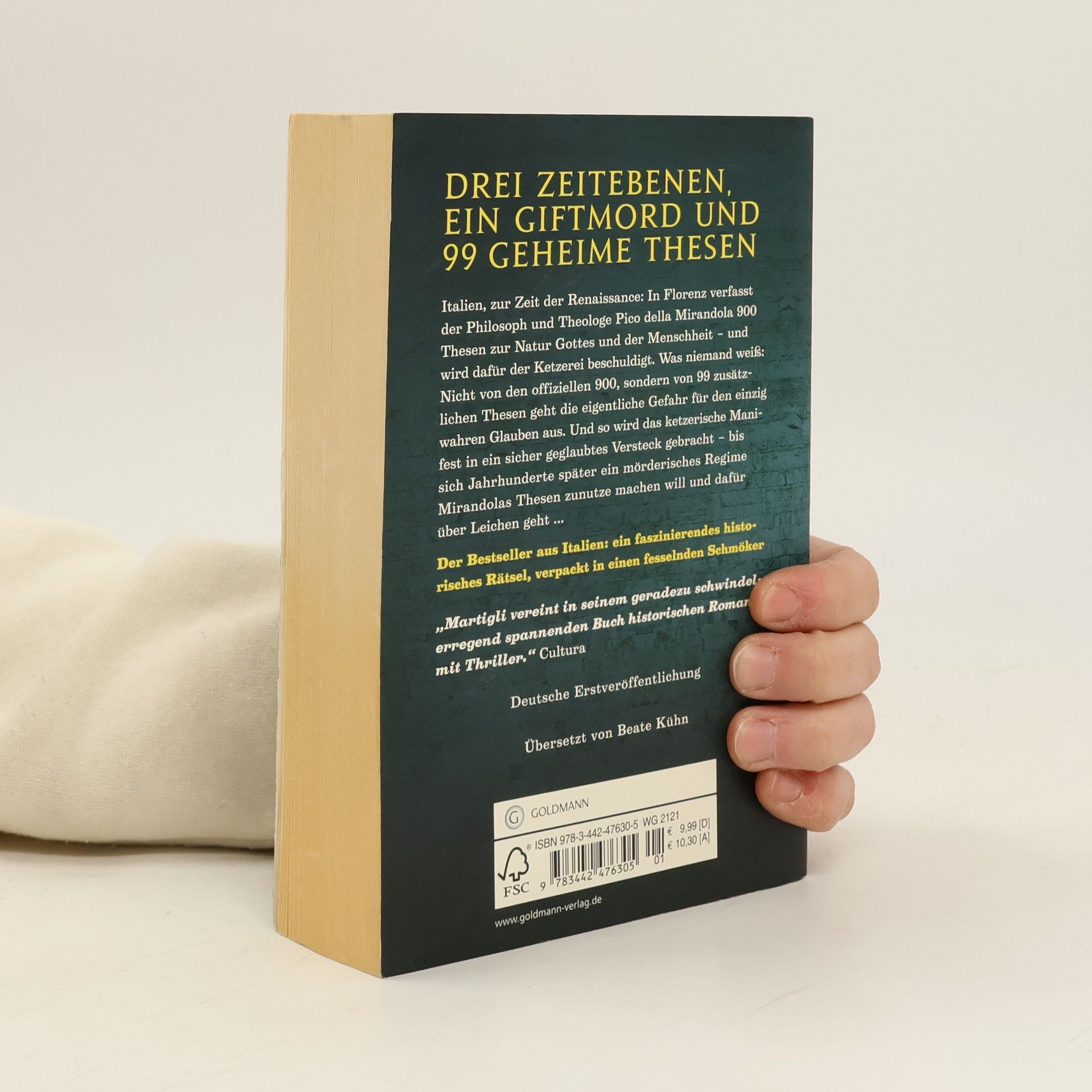 Drei Zeitebenen, ein Giftmord und 99 geheime Thesen Italien, zur Zeit der Renaissance: In Florenz verfasst der Philosoph und Theologe Pico della Mirandola 900 Thesen zur Natur Gottes und der Menschheit – und wird dafür der Ketzerei beschuldigt. Was niemand weiß: Nicht von den offiziellen 900, sondern von 99 zusätzlichen Thesen geht die eigentliche Gefahr für den einzig wahren Glauben aus. Und so wird das ketzerische Manifest an ein sicher geglaubtes Versteck gebracht – bis Jahrhunderte später sich ein mörderisches Regime Mirandolas Thesen zu nutze machen will und dafür über Leichen geht ...