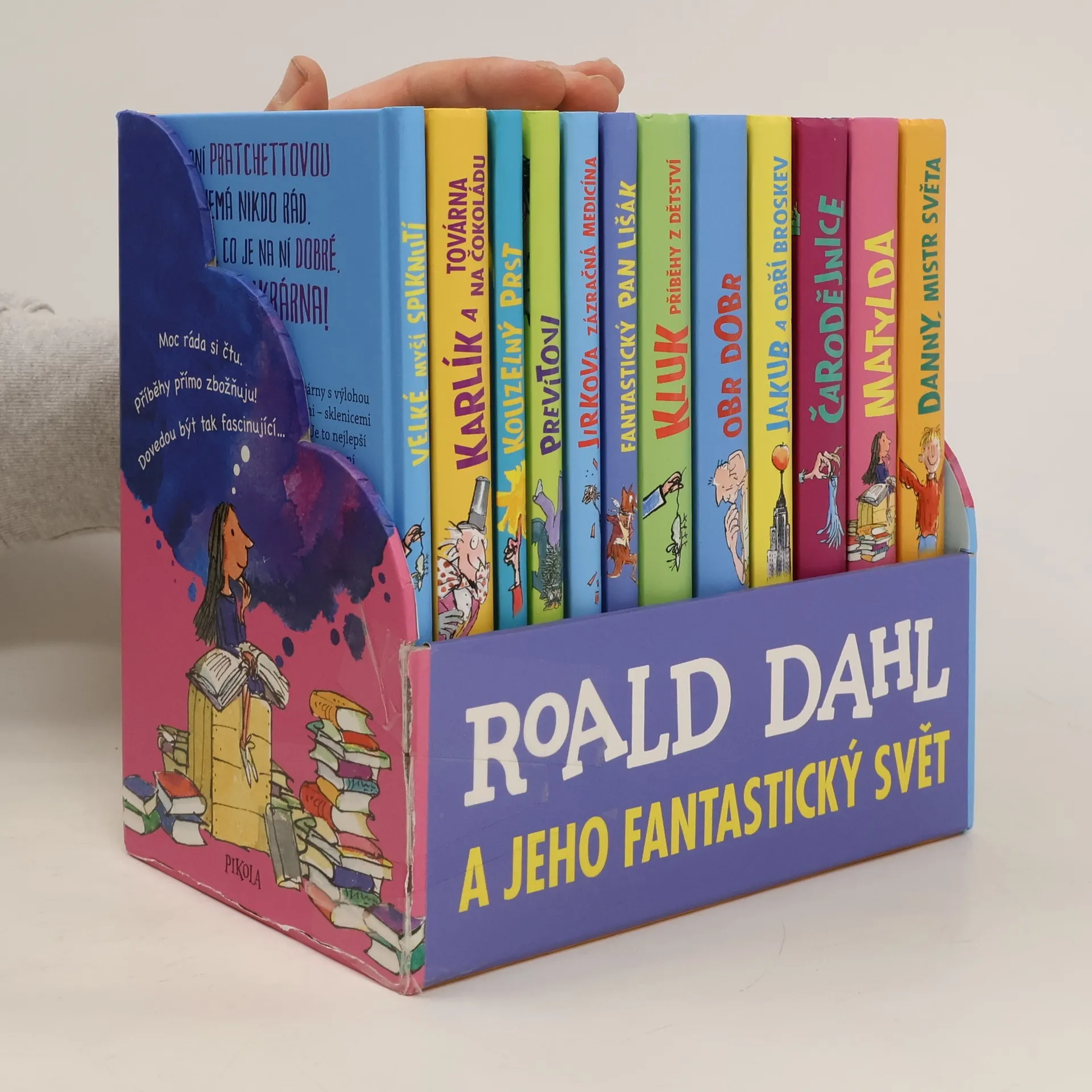 Přijměte pozvání do úžasného světa fantazie a příběhů. Ty nejlepší ingredience garantuje nejbáječnější vypravěč na světě (a taky pan Willy Wonka)! Knihy Roalda Dahla milují děti po celém světě. Nádherně vyvedený komplet obsahuje 12 nejoblíbenějších příběhů. Představte si Matyldu, Karlíka, Jirku, Dannyho, Obra Dobra, pana Lišáka, Jakuba se Stonožníkem a Žížalákem a další úžasné kamarády všechny pohromadě. To je ten nejbáječnější sen, co se vám může zdát!