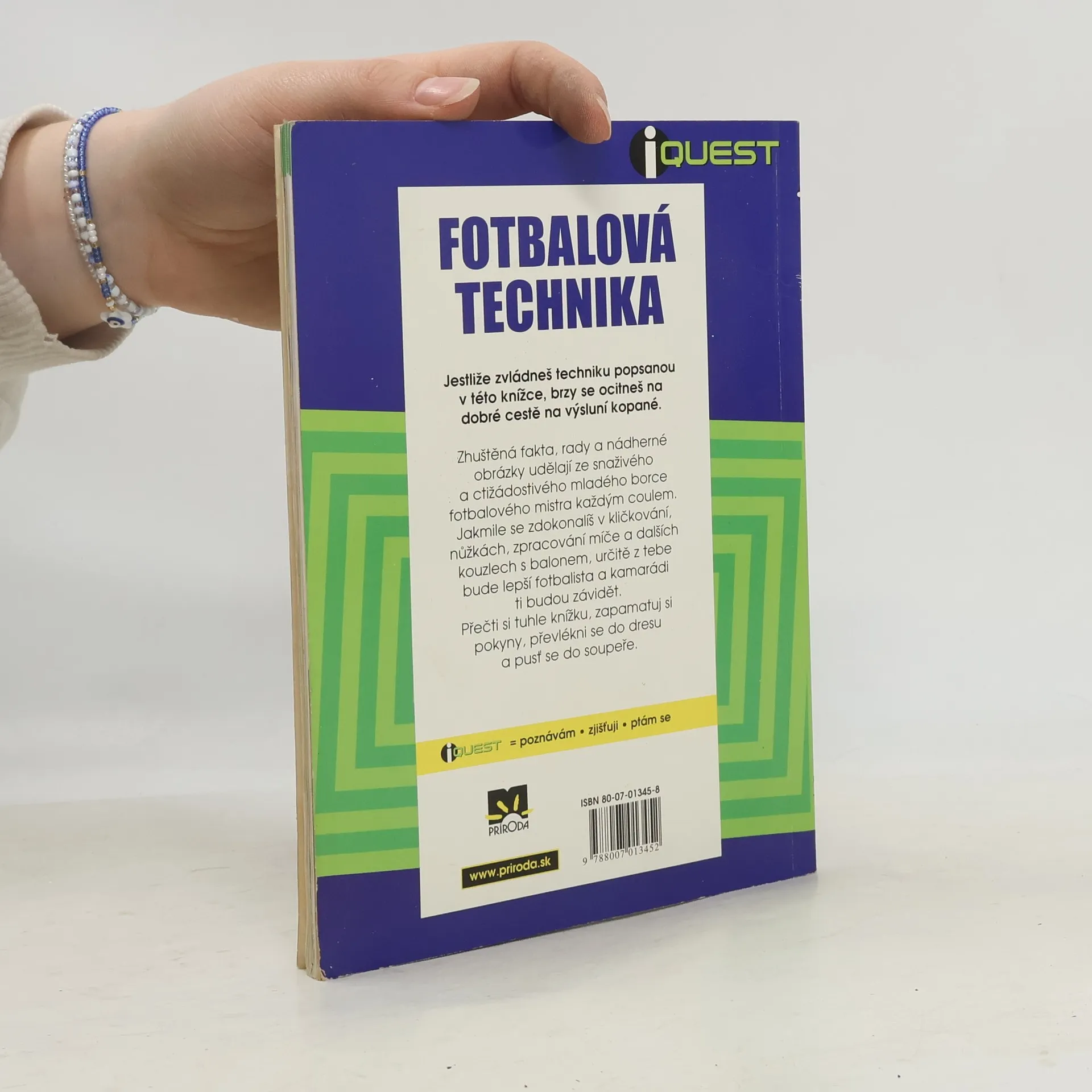 Základní fakta v malíčku Jestliže zvládneš techniku popsanou v této knížce, brzy se ocitneš na dobré cestě na výsluní kopané. Zhuštěná fakta, rady a nádherné obrázky udělají ze snaživého a ctižádostivého mladého borce fotbalového mistra každým coulem. Jakmile se zdokonalíš v kličkování, nůžkách, zpracování míče a dalších kouzlech s balonem, určitě z tebe bude lepší fotbalista a kamarádi tě budou obdivovat.