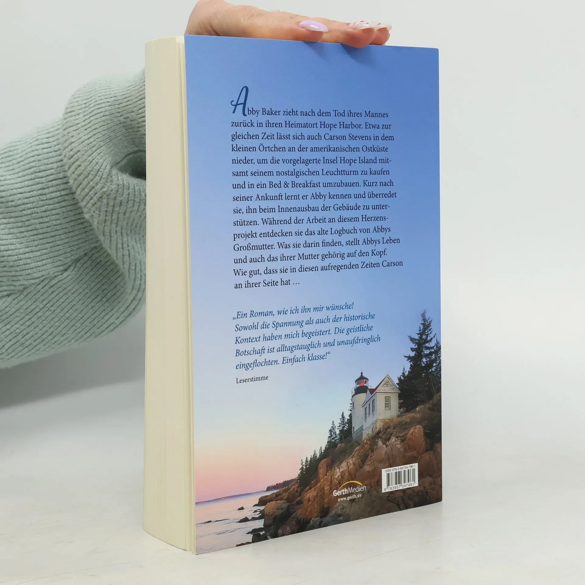 Ein Roman, wie ich ihn mir wünsche - voller Spannung und historischer Atmosphäre! Abby Baker zieht nach dem Tod ihres Mannes zusammen mit ihrer Tochter Emely zurück in ihren Heimatort Hope Harbor. Etwa zur gleichen Zeit lässt sich auch Carson Stevens in dem kleinen Örtchen an der amerikanischen Ostküste nieder, um die vorgelagerte Insel Hope Island mitsamt seinem nostalgischen Leuchtturm zu kaufen und in ein Bed & Breakfast umzubauen. Kurz nach seiner Ankunft lernt er Abby kennen, die Enkelin der ehemaligen Leuchtturmwärter, und überredet sie, ihn beim Innenausbau der Gebäude zu unterstützen. Während Abby und Carson gemeinsam an diesem Herzensprojekt arbeiten, entdecken sie in einem Geheimfach des Leuchtturmwärterhäuschens das alte Logbuch von Abbys Großmutter. Was sie darin finden, stellt Abbys Leben und auch das ihrer Mutter gehörig auf den Kopf. Wie gut, dass Abby in diesen aufregenden Zeiten Carson an ihrer Seite hat …