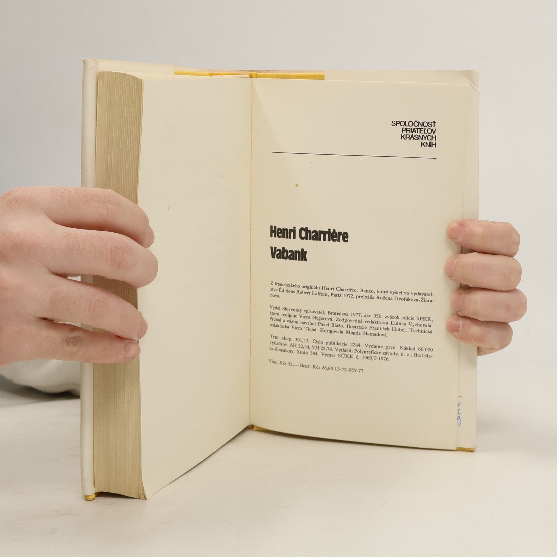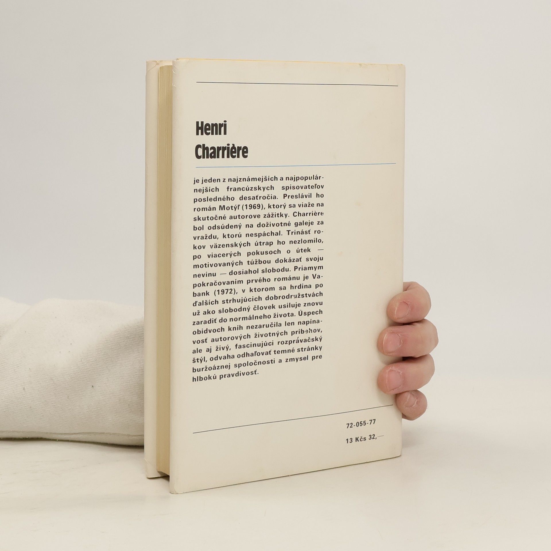 Henri Charriére je jeden z najznámejších a najpopulárnejších francúzskych spisovateľov posledného desaťročia. Preslávil ho román Motýľ (1969), ktorý sa viaže na skutočné autorove zážitky. Charriére bol odsúdený na doživotné galeje za vraždu, ktorú nespáchal. Trinásť rokov väzenských útrap ho nezlomilo, po viacerých pokusoch o útek — motivovaných túžbou dokázať svoju nevinu — dosiahol slobodu. Priamym pokračovaním prvého románu je Vabank (1972), v ktorom sa hrdina po ďalších strhujúcich dobrodružstvách už ako slobodný človek usiluje znovu zaradiť do normálneho života. Úspech obidvoch kníh nezaručila len napínavosť autorových životných príbehov, ale aj živý, fascinujúci rozprávačský štýl, odvaha odhaľovať temné stránky buržoáznej spoločnosti a zmysel pre hlbokú pravdivosť.