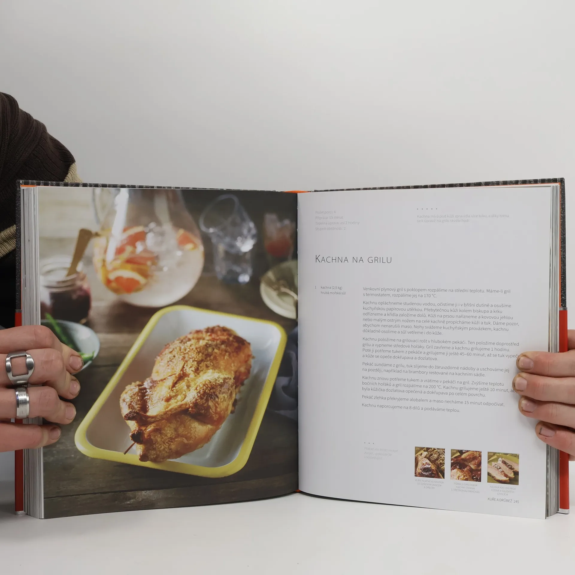 Rozsáhlá fotografická publikace obsahuje více než 200 receptů na grilované pokrmy z různých druhů masa a ryb, ovoce a zeleniny, pizzy, saláty, omáčky a salsy. Jednoduché, levné, tradiční, gurmánské i sváteční.