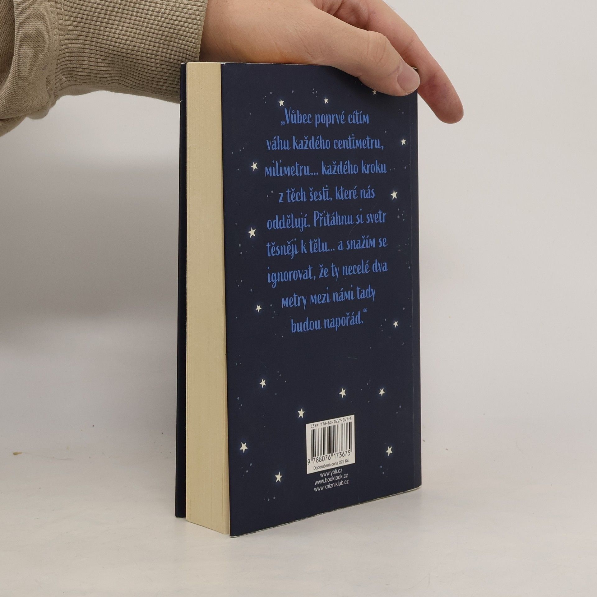 Stella Grantová má cystickou fibrózu a její kontakt s okolním světem je minimální. Aby neohrozila své šance na transplantaci, musí se chránit před kýmkoli a čímkoli, co by mohlo být nositelem infekce. Šest stop. To je vzdálenost, kterou musí dodržovat. Šest stop – bez výjimky. Willa Newmana léčba vůbec nezajímá. Každým dnem mu bude osmnáct a pak – sbohem, nemocnice. Vykašle se na léky a konečně si bude užívat života. Will je přesně tím, od koho by se Stella měla držet dál. Pokud se k němu přiblíží a nakazí se, mohla by přijít o své místo na seznamu čekatelů. Aby se tak nestalo, musí si držet odstup. Čím víc se ale s Willem sbližují, tím víc jim předepsaných šest stop začíná připadat jako trest. Jaké by to asi bylo, kdyby si pro sebe mohli ukrást trochu té svobody, kterou jim vzala jejich nemoc? Co by se stalo, kdyby zkrátili vzdálenost na pět stop?