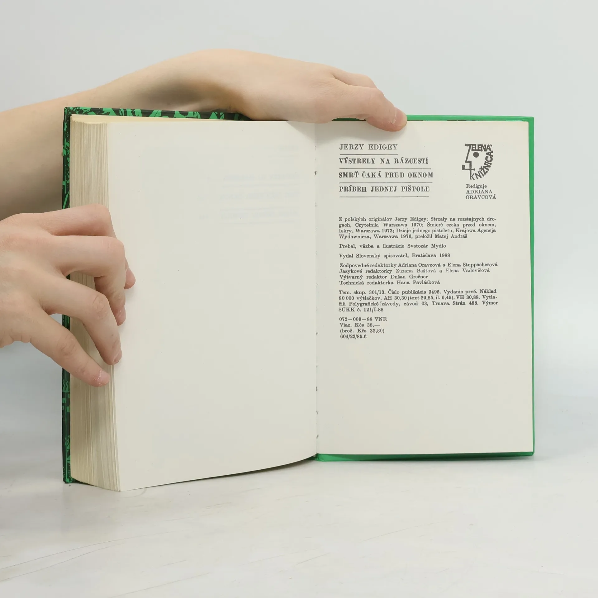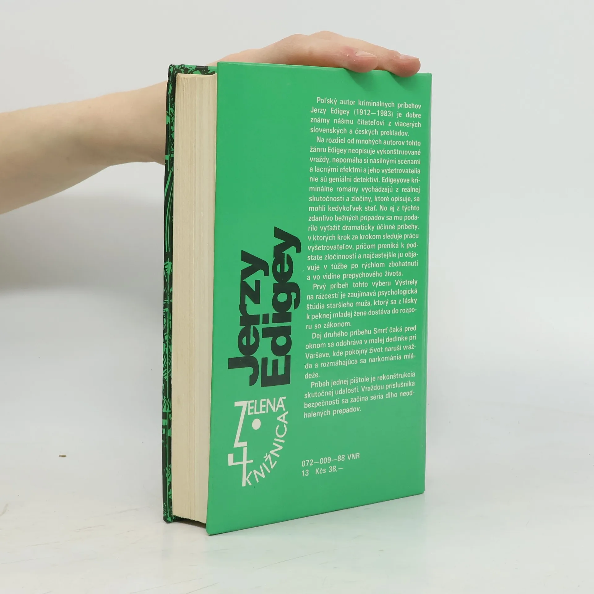 Poľský autor kriminálnych príbehov Jerzy Edigey (1912—1983) je dobre známy nášmu čitateľovi z viacerých slovenských a českých prekladov. Na rozdiel od mnohých autorov tohto žánru Edigey neopisuje vykonštruované vraždy, nepomáha si násilnými scénami a lacnými efektmi a jeho vyšetrovatelia nie sú geniálni detektívi. Edigeyove kriminálne romány vychádzajú z reálnej skutočnosti a zločiny, ktoré opisuje, sa mohli kedykoľvek stať. No aj z týchto zdanlivo bežných prípadov sa mu podarilo vyťažiť dramaticky účinné príbehy, v ktorých krok za krokom sleduje prácu vyšetrovateľov, pričom preniká k podstate zločinnosti a najčastejšie ju objavuje v túžbe po rýchlom zbohatnutí a vo vidine prepychového života. Prvý príbeh tohto výberu Výstrely na rázcestí je zaujímavá psychologická štúdia staršieho muža, ktorý sa z lásky k peknej mladej žene dostáva do rozporu so zákonom. Dej druhého príbehu Smrť čaká pred oknom sa odohráva v malej dedinke pri Varšave, kde pokojný život naruší vražda a rozmáhajúca sa narkománia mládeže. Príbeh jednej pištole je rekonštrukcia skutočnej udalosti. Vraždou príslušníka bezpečnosti sa začína séria dlho neodhalených prepadov. Prvé vydanie. Cena knihy v čase vydania: 38.- Kčs.