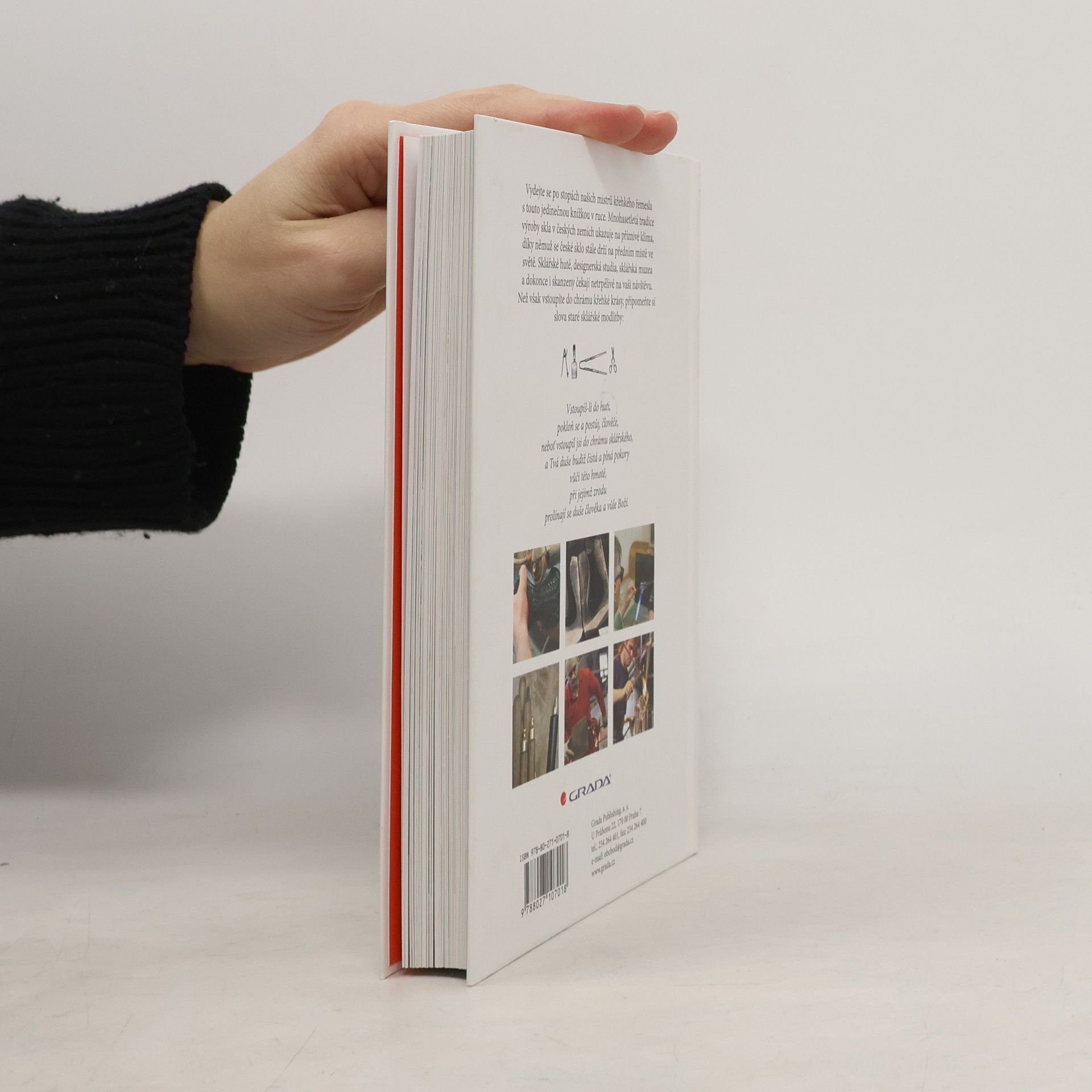 Vydejte se po stopách našich mistrů křehkého řemesla s touto jedinečnou knížkou v ruce. Mnohasetletá tradice výroby skla v českých zemích ukazuje na příznivé klima, díky němuž se české sklo stále drží na předním místě ve světě. Sklářské hutě, designerská studia, sklářská muzea a dokonce i skanzeny čekají netrpělivě na vaši návštěvu. Než však vstoupíte do chrámu křehké krásy, připomeňte si slova staré sklářské modlitby: Vstoupíš-li do huti, pokloň se a postůj, člověče, neboť vstoupil jsi do chrámu sklářského, a Tvá duše budiž čistá a plná pokory vůči této hmotě, při jejímž zrodu prolínají se duše člověka a vůle Boží.