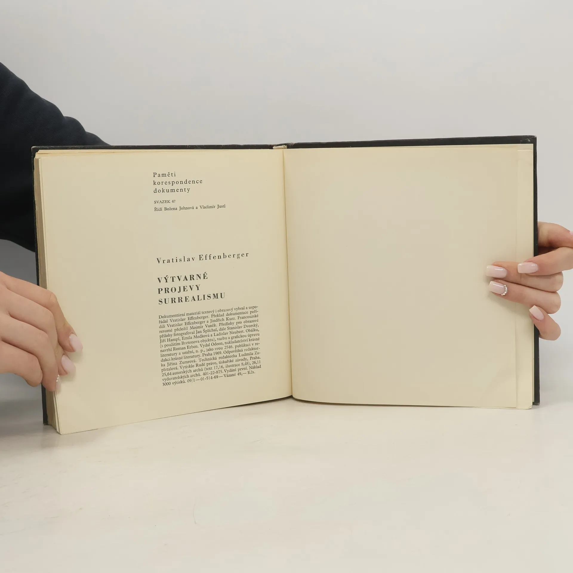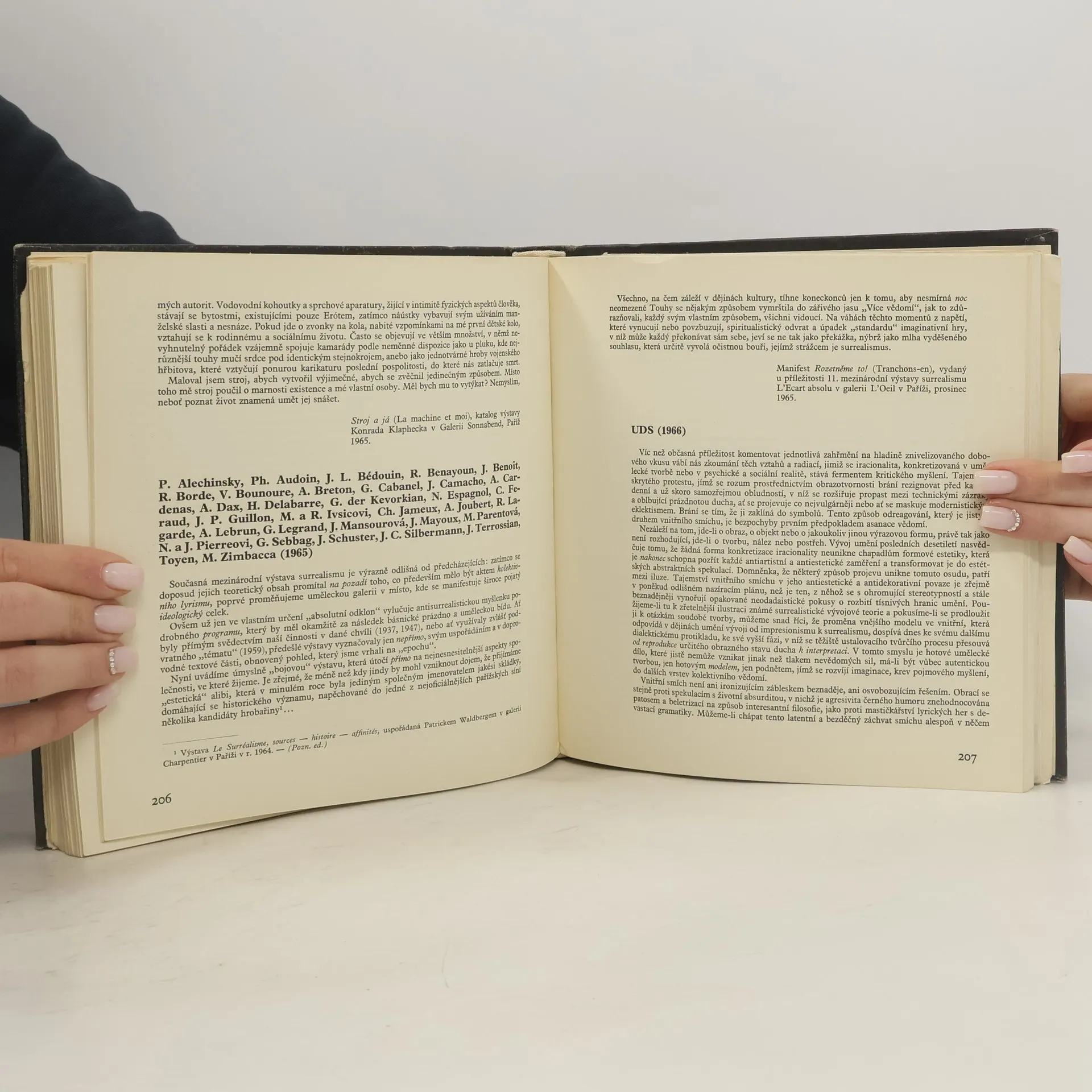 Výtvarné projevy surrealismu zkoumá autor z hlediska širších a hlubších souvislostí, než jaké předpokládá běžná teorie umění. Snaží se přiblížit oblast surrealistické imaginace, související s lidským nevědomím, a podat obraz vývoje jeho výtvarných metod v mezinárodním rozsahu i ve sféře zdejšího surrealismu, kterou představují Štyrský, Teige, Toyen, Heisler, Medek aj. Druhou část knihy tvoří jednak chronologický přehled z dějin výtvarného surrealismu, jednak dokumentární fragmenty z let 1923–1968, které dokreslují myšlenkové postupy jednotlivých autorů i vývojovou problematiku výtvarného surrealismu. – Francouzské resumé, chronologický přehled; obsahuje bibliografii a bibliografické odkazy.
