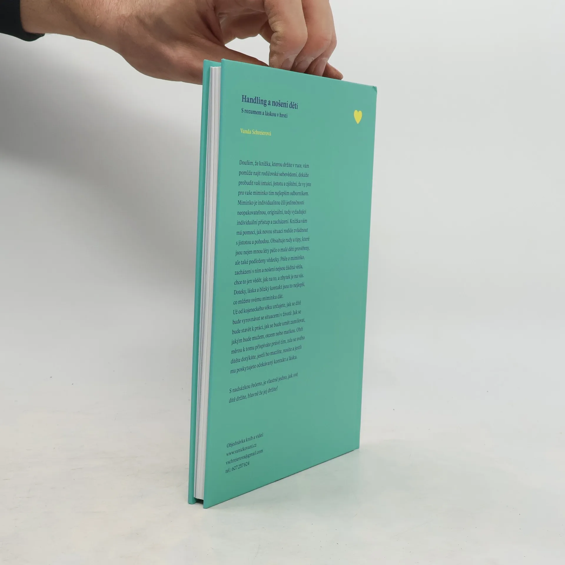 Zacházení s miminkem neboli handling - zcela přirozenou schopnost, kterou má každá milující matka v sobě, tzn. že umí intuitivně, tedy správně zvedat, nosit, oblékat, přebalovat své miminko. Toto laskavé a cituplné chování vůči dítěti lze těžko popsat slovy a Vanda Schreierová zvládá popis s lehkostí pomocí sledování pohybových schopností nejmenších dětí na principu znalostí vědeckého oboru kinestetiky.