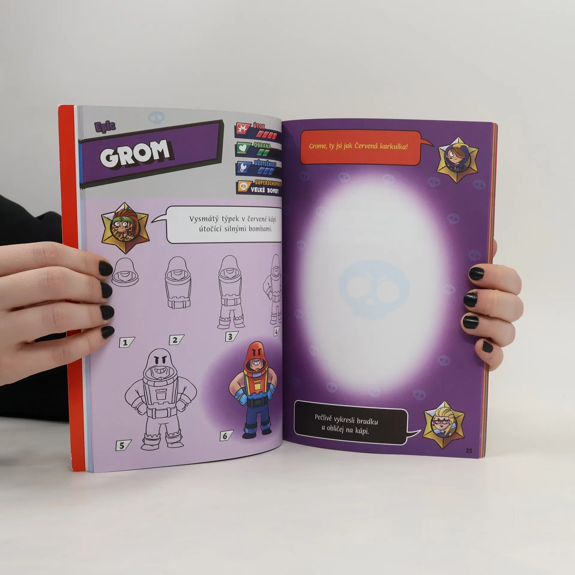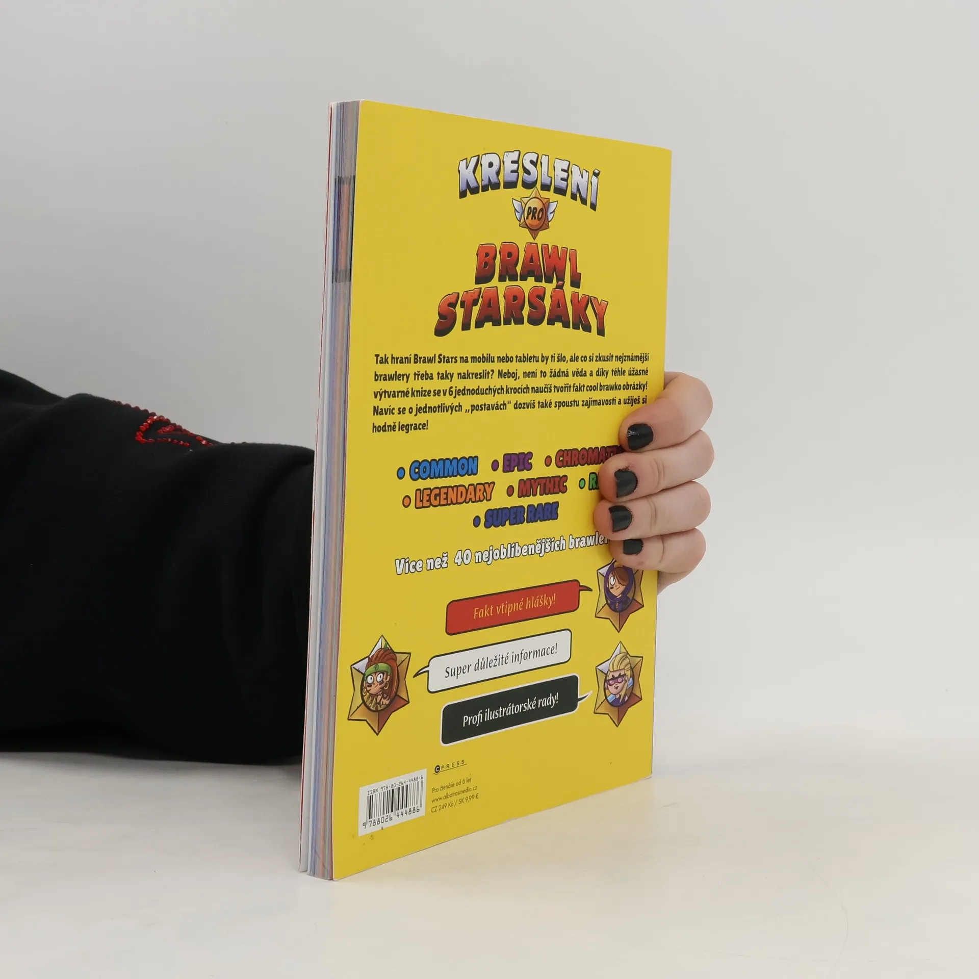 Tak hraní Brawl Stars na mobilu nebo tabletu by ti šlo, ale co si zkusit nejznámější brawlery třeba taky nakreslit? Neboj, není to žádná věda a díky téhle jedinečné výtvarné knize se v 6 jednoduchých krocích naučíš tvořit fakt cool brawko obrázky! Navíc se o jednotlivých „postavách“ dozvíš také spoustu zajímavostí, o kterých jsi zaručeně ještě neslyšel, a nebudou chybět ani vtipné hlášky!