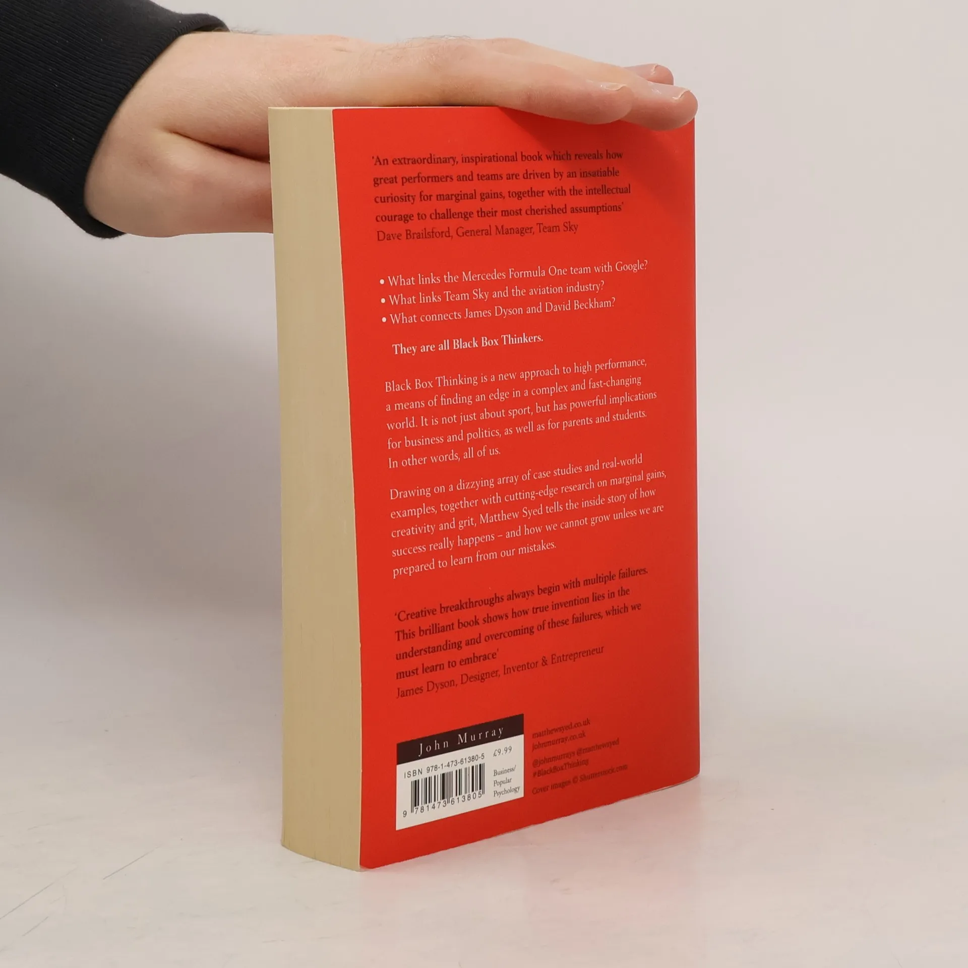 What links the Mercedes Formula One team with Google? What links Dave Braisford's Team Sky and the aviation industry? What is the connection between the inventor James Dyson and the footballer David Beckham? They are all Black Box Thinkers. Whether developing a new product, honing a core skill or just trying to get a critical decision right, Black Box Thinkers aren't afraid to face up to mistakes. In fact, they see failure as the very best way to learn. Rather than denying their mistakes, blaming others or attempting to spin their way out of trouble, these institutions and individuals interrogate errors as part of their future strategy for success. How many of us, hand on heart, can say that we have such a healthy relationship with failure? Learning from failure has the status of a cliché, but this book reveals the astonishing story behind the most powerful method of learning known to mankind, and reveals the arsenal of techniques wielded by some of the world's most innovative organizations. Their lessons can be applied across every field - from sport to education, from business to health. Using gripping case studies, exclusive interviews and really practical takeaways, Matthew Syed - the award-winning journalist and best-selling author of Bounce - explains how to turn failure into success, and shows us how we can all become better Black Box Thinkers.