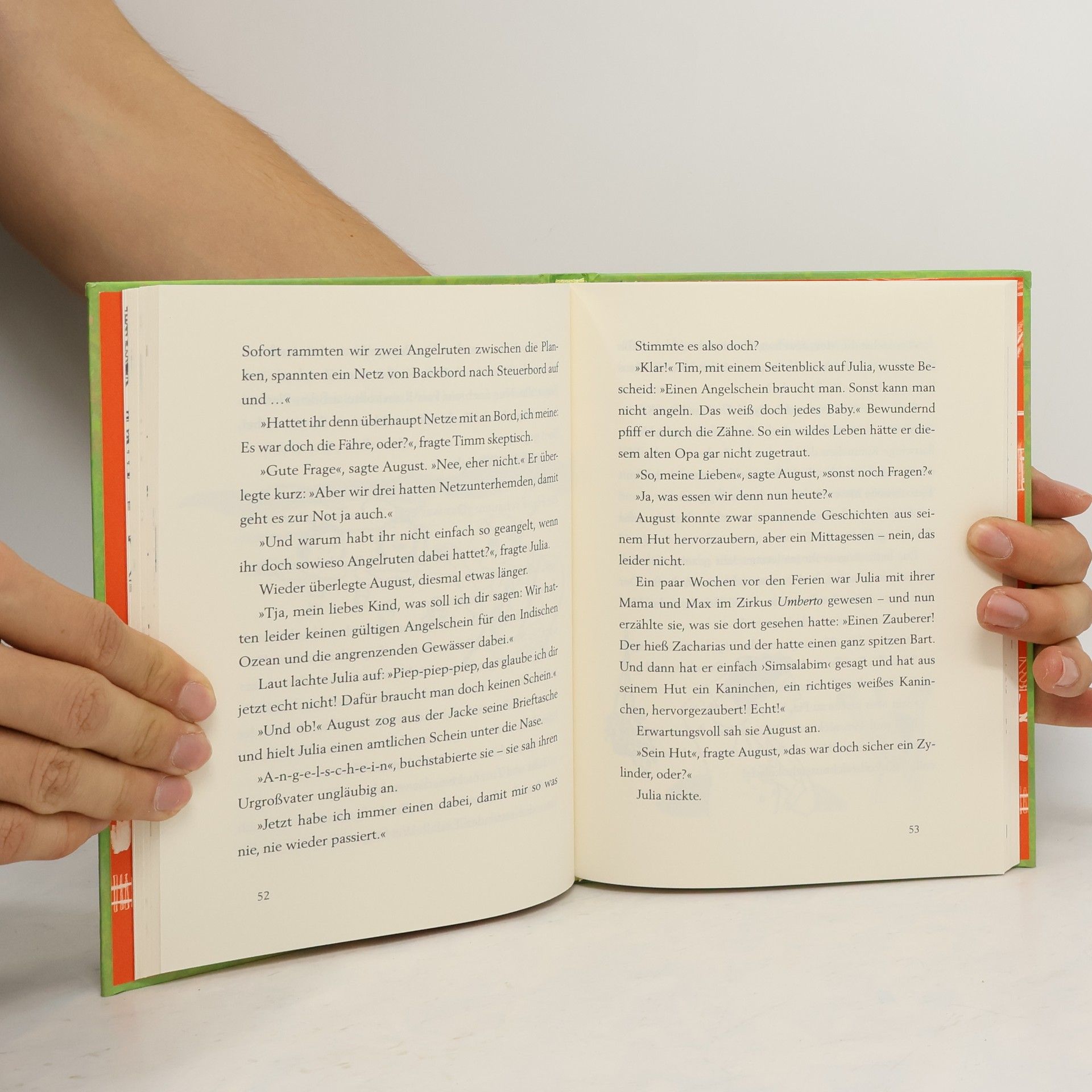 Als Julia in Groß Neuendorf ankommt, steht August schon an der Bushaltestelle. Vor Freude wirft er seinen Hut in die Luft. »Wir nehmen uns jeden Tag etwas vor«, sagt er fröhlich. Julia sitzt gern auf der Bank in Augusts Werkstatt und sieht ihm bei der Arbeit zu. August erzählt von früher – zum Beispiel, als er noch Fährmann am Fluss war. Manchmal kommt Tim zu Besuch. Dann fahren sie zusammen zum Angeln. Wenn August müde ist, sitzt Julia an seinem Bett und deckt ihn zu. Zurück in der Schule wandern Julias Gedanken oft zu August. Eines Nachmittags im Oktober fahren Julia und ihre Mama wieder nach Groß Neuendorf. Auf der Hutablage liegt ein Kranz mit einer Schleife ... Eine wunderschöne Geschichte darüber, was ganz junge und ganz alte Menschen verbindet.