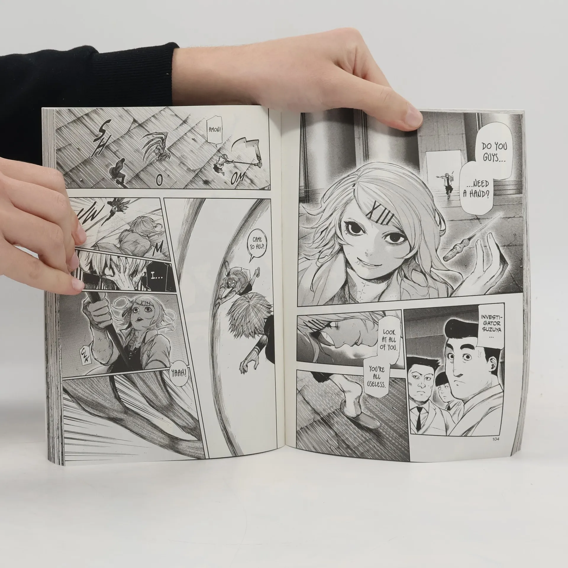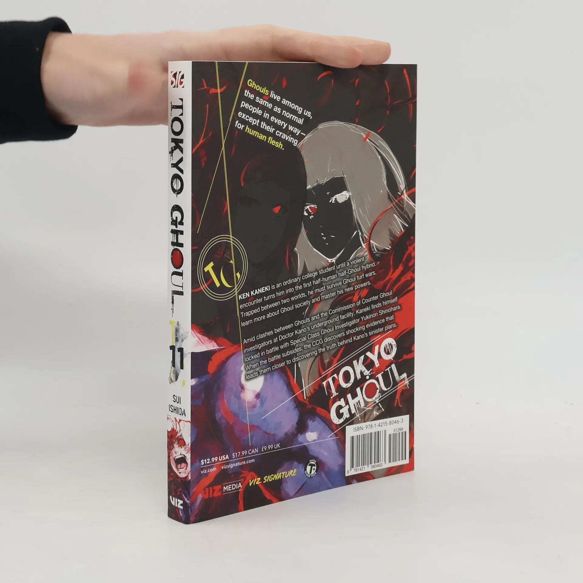 Ghouls live among us, the same as normal people in every way—except for their craving for human flesh. Ken Kaneki is an ordinary college student until a violent encounter turns him into the first half-human half-Ghoul hybrid. Trapped between two worlds, he must survive Ghoul turf wars, learn more about Ghoul society and master his new powers. Amid clashes between Ghouls and the Commission of Counter Ghoul investigators at Doctor Kano’s underground facility, Kaneki finds himself locked in battle with Special Class Ghoul investigator Yukinori Shinohara. When the battle subsides, the CCG discovers shocking evidence that leads them closer to discovering the truth behind Kano’s sinister plans.