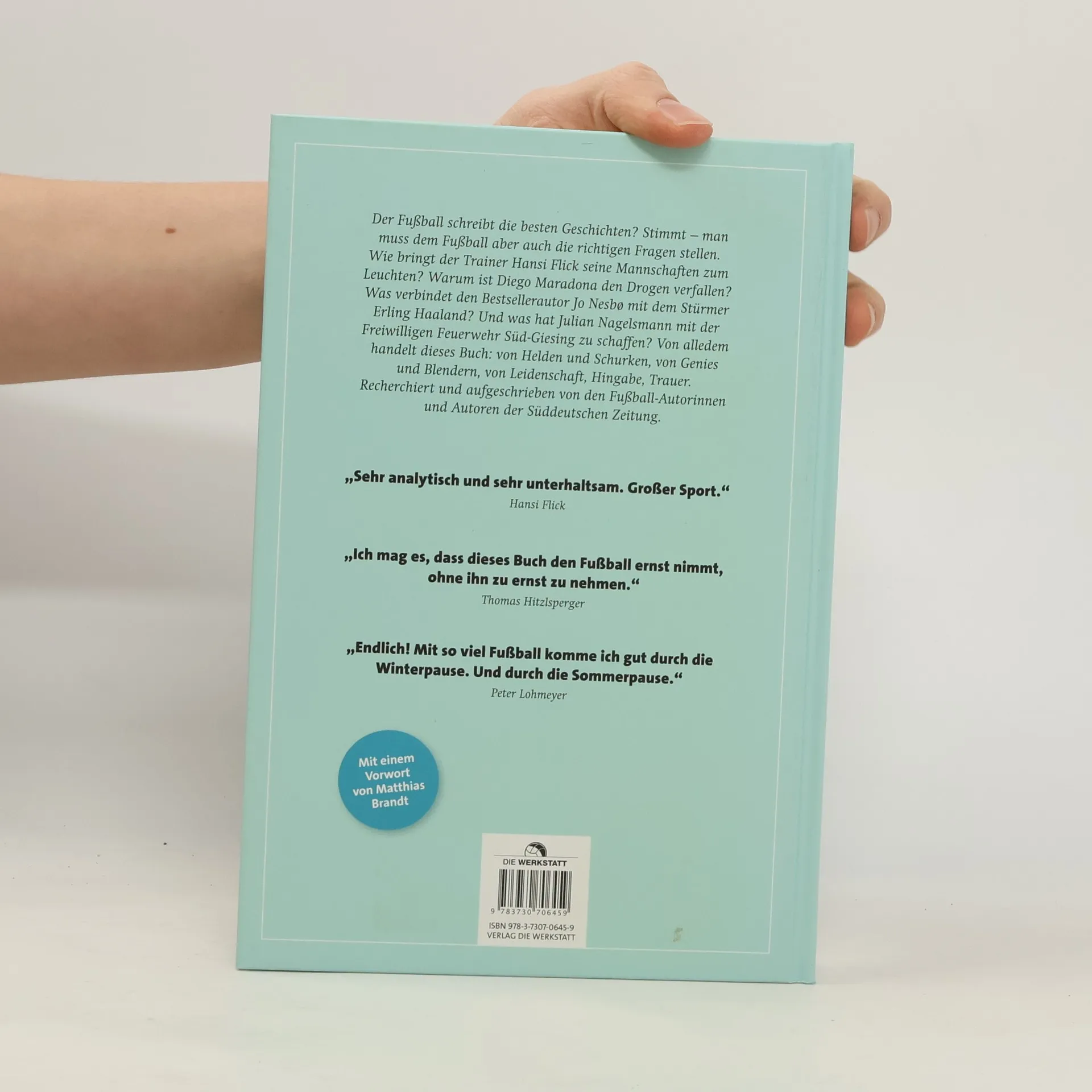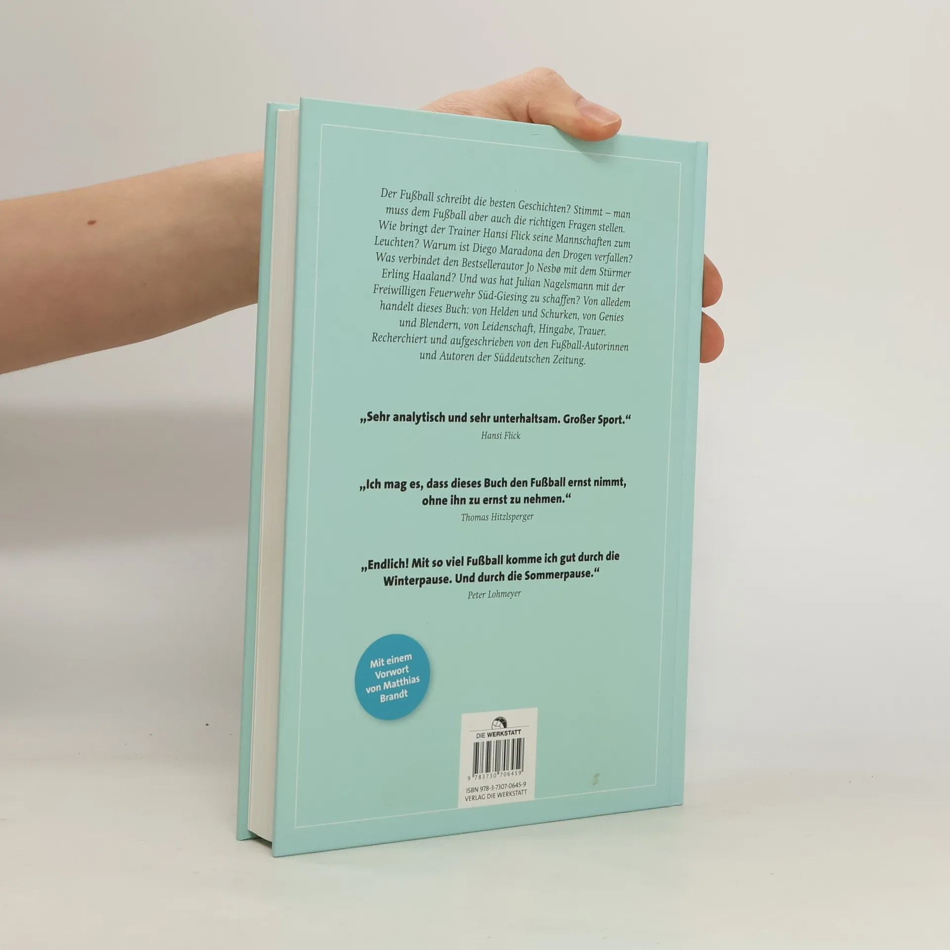 Der Fußball schreibt die besten Geschichten? Stimmt – man muss dem Fußball aber auch die richtigen Fragen stellen. Wie bringt der Trainer Hansi Flick seine Mannschaften zum Leuchten? Warum ist Diego Maradona den Drogen verfallen? Was verbindet den Bestsellerautor Jo Nesbø mit dem Stürmer Erling Haaland? Und was hat Julian Nagelsmann mit der Freiwilligen Feuerwehr Süd-Giesing zu schaffen? Von alledem handelt dieses Buch: von Helden und Schurken, von Genies und Blendern, von Leidenschaft, Hingabe, Trauer. Recherchiert und aufgeschrieben von den Fußball-Autorinnen und Autoren der Süddeutschen Zeitung. Mit einem Vorwort von Matthias Brandt