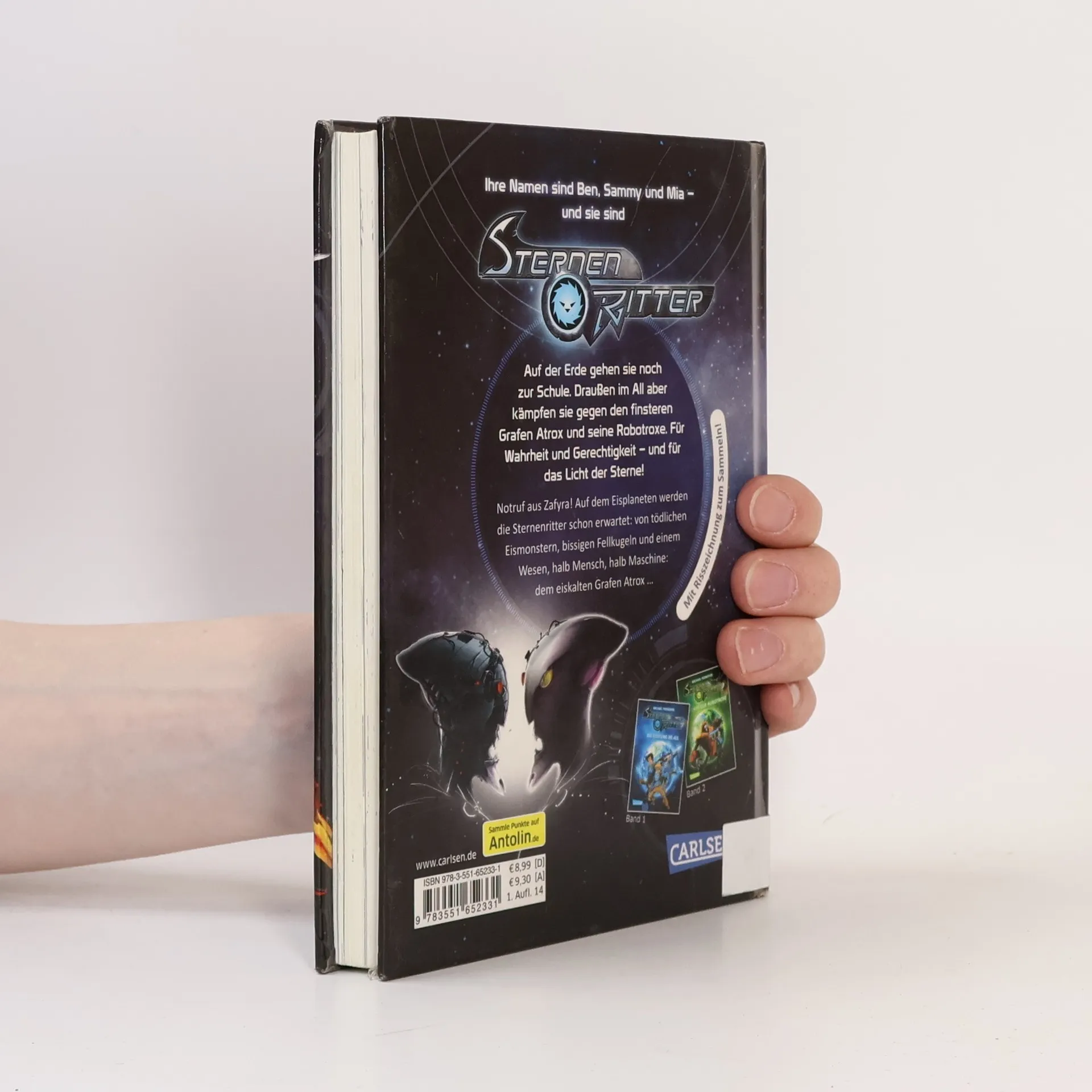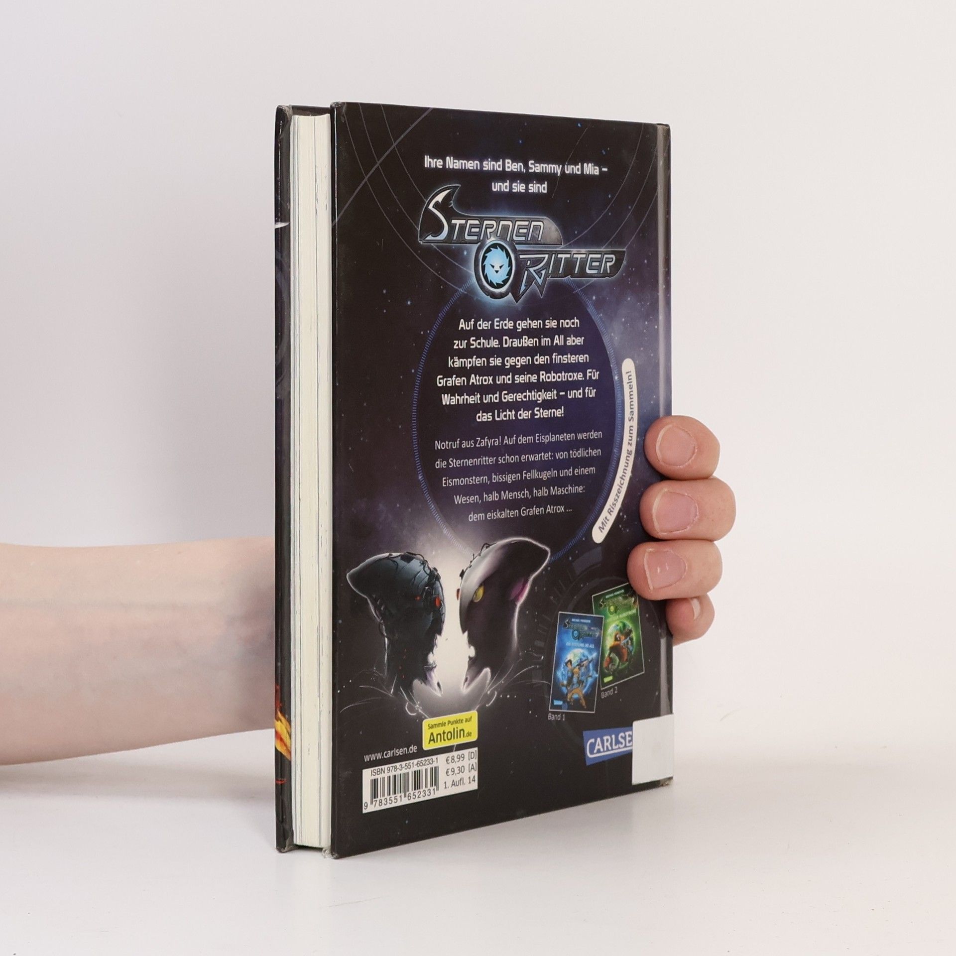 *** Ihre Namen sind Ben, Sammy und Mia – und sie sind Sternenritter. Auf der Erde gehen sie noch zur Schule. Draußen im All aber kämpfen sie gegen den finsteren Grafen Atrox und seine Robotroxe. Für Wahrheit und für Gerechtigkeit – und für das Licht der Sterne! *** Band 3: Notruf aus Zafyra! Auf dem Eisplaneten werden die Sternenritter schon erwartet: von tödlichen Eismonstern, bissigen Fellkugeln und einem Wesen, halb Mensch, halb Maschine: dem eiskalten Grafen Atrox … Das Abenteuer geht weiter!