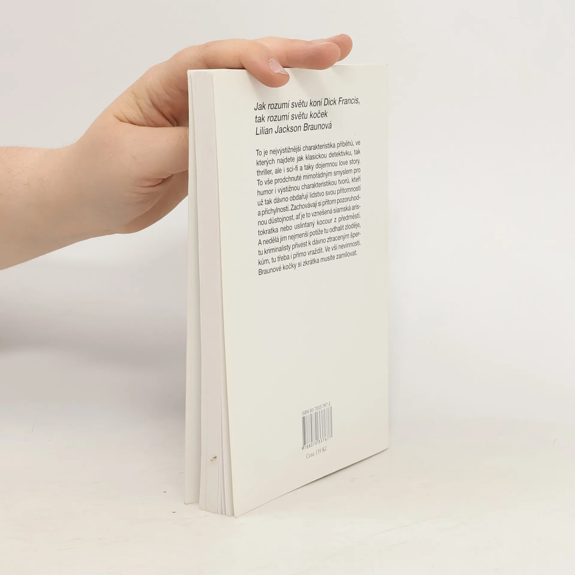 Jak rozumí světu koní Dick Francis, tak rozumí světu koček Lilian Jackson Braunová. To je nejvýstižnější charakteristika příběhů, ve kterých najdete jak klasickou detektivku, tak thriller, ale i sci-fi a taky dojemnou love story. To vše prodchnuté mimořádným smyslem pro humor a výstižnou charakteristikou tvorů. kteří už tak dávno obdařují lidstvo svou přítomností a příchylností. Zacovávají si přitom pozoruhodnou důstojnost, ať je to vznešená siamská aristokratka nebo uslintaný kocour z předměstí. A nedělá jim nejmenší potíže tu odhalit zloděje, tu kriminalisty přivést k dávno ztraceným šperkům, tu třeba i přímo vraždit. Ve vší nevinnosti. Braunové kočky si zkrátka musíte zamilovat.... celý text