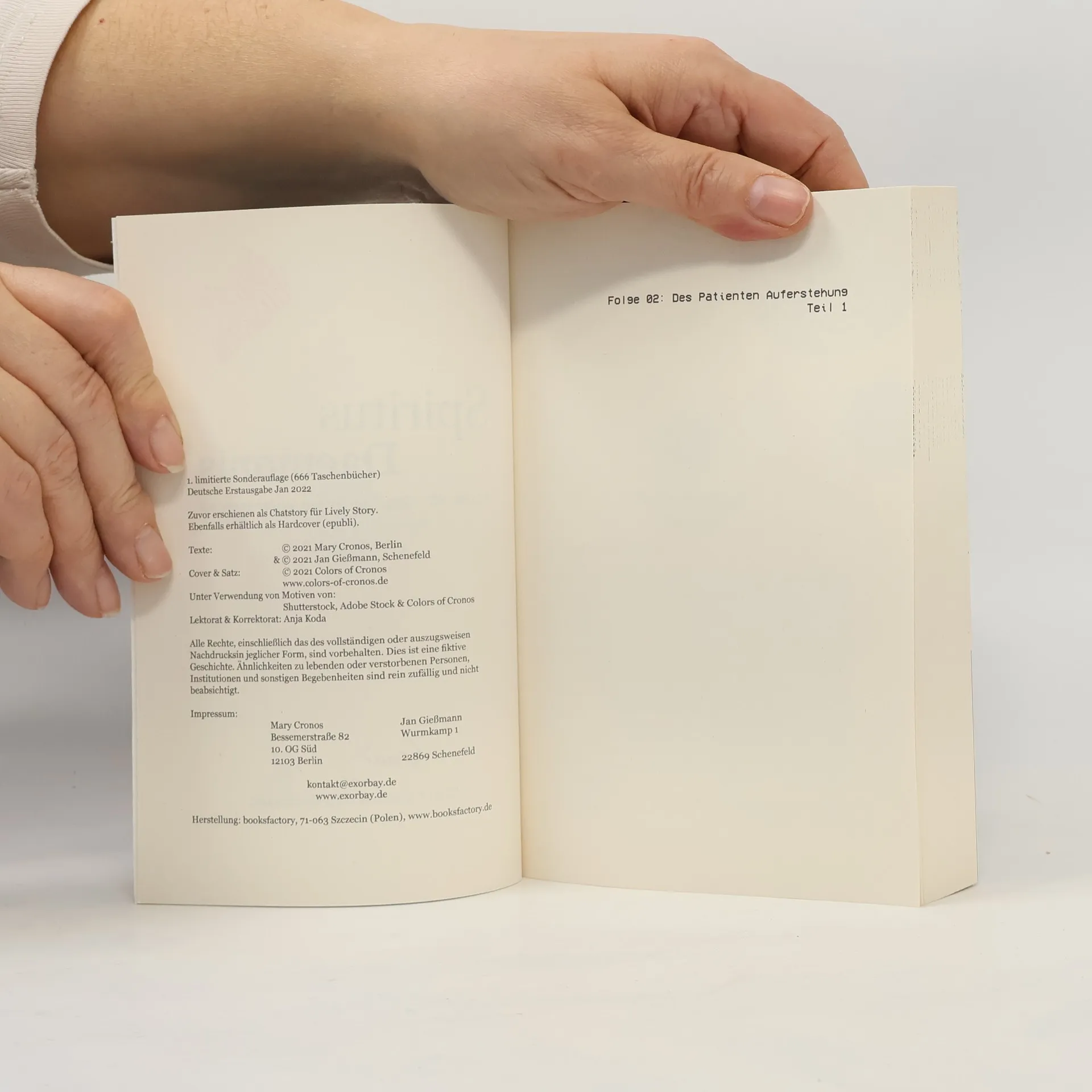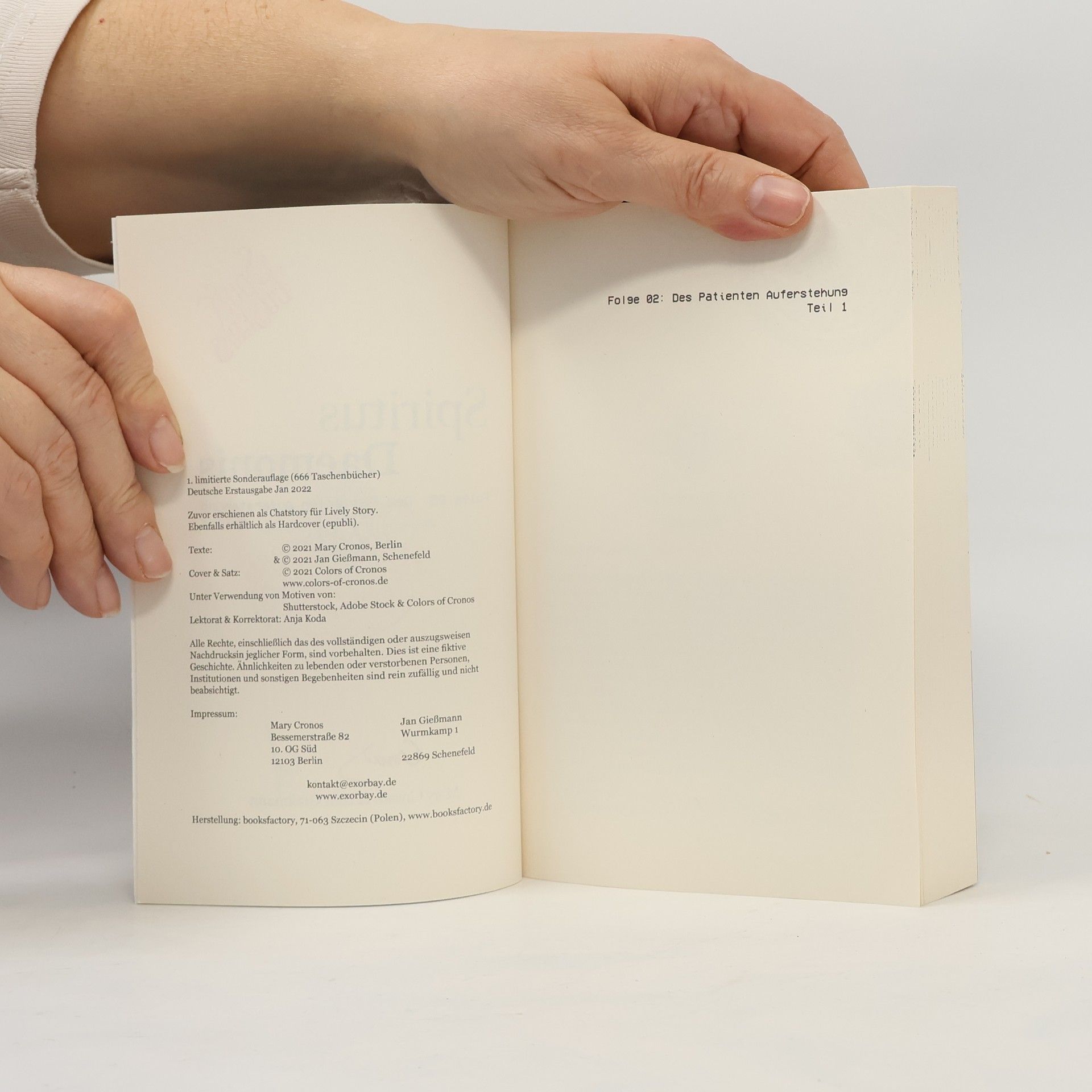 SPUKBUSTERS Wir lösen für Sie Probleme, die Sie ohne uns nicht hätten. Schnell, kompetent und höllisch gut. Teresa wird keine Ruhe gegönnt, denn in Folge 02 von Spiritus Daemonis sorgt ihr neuer … Praktikant Maleach für den ersten Fall der “Spukbusters”. Nachdem eine junge Krankenschwester von einem Komapatienten durchs Krankenhaus gejagt wurde, hat die ungleiche Gruppe keine Wahl. Im wahrsten Sinne des Wortes. Während Teresa mit Geistern und Seelen spricht, schlüpft Vincent erneut in seine Soutane und diesmal wird es ihn das Leben kosten – zwei Mal. Die zweite Folge zur humorvollen Mystery-Horrorserie, in der sich Teresa und Vincent mit allerlei Geistern, Dämonen und anderen Wesen herumschlagen müssen. Mit unkonventionellen Mitteln – und meistens ohne Plan B – begegnen sie Sagengestalten aus Religion und lokaler Folklore. Doch sie stehen nicht allein gegen die Dunkelheit, denn ein Teil der Unterwelt scheint Interesse an ihrer Arbeit zu haben. Dies ist die limitierte Erstauflage von Folge 02, Teil 1. Es existieren nur 666 Exemplare dieser Auflage, die alle gestempelt und nummeriert sind.