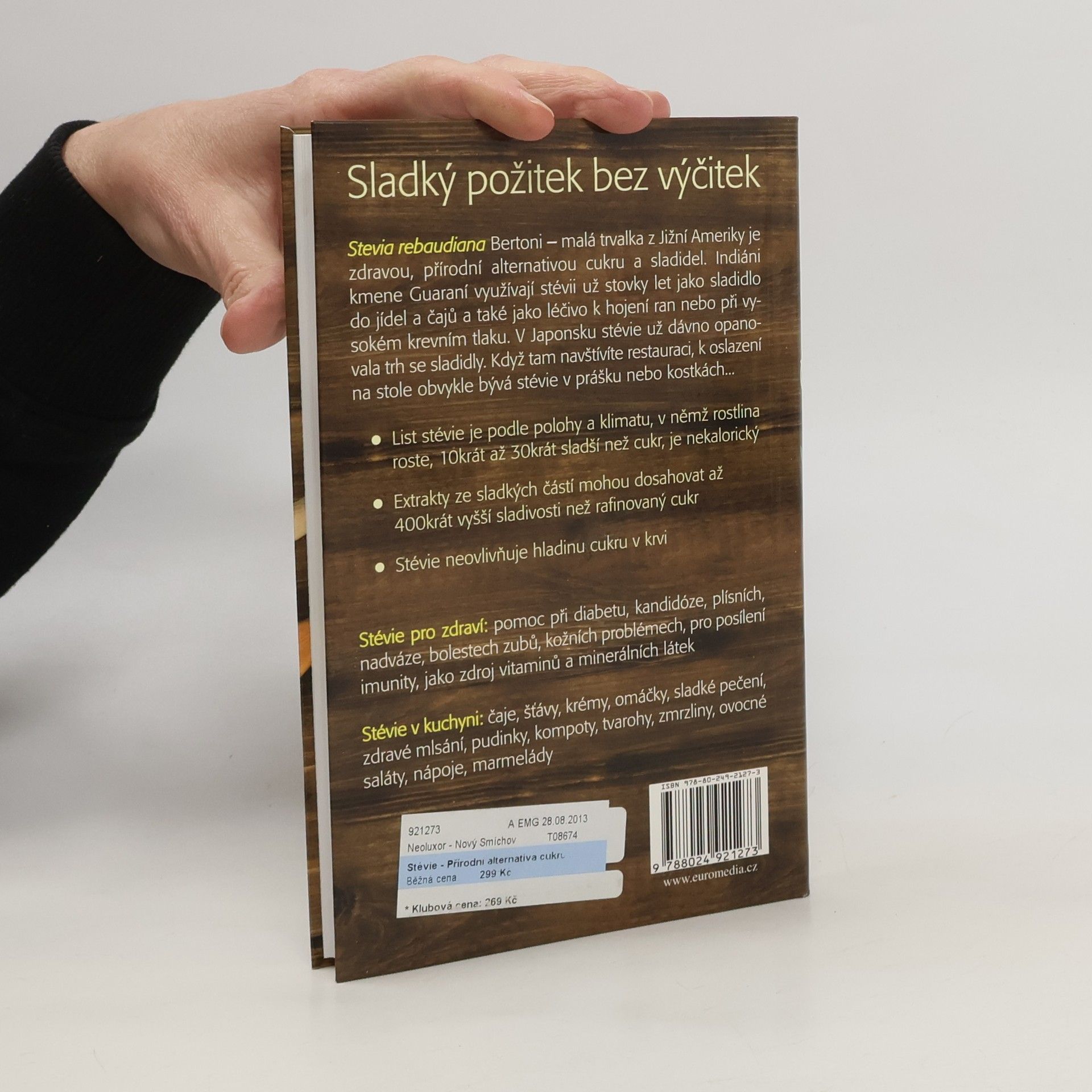 Stévie je sladký požitek bez výčitek, a tím skutečná alternativa cukru a umělých sladidel. Osladí bez kalorií, nemá vedlejší účinky a dodá důležité minerální látky a vitaminy k posílení imunitního systému. Je ideální při nadváze, diabetu, při onemocnění kandidózou a neurodermitidě. Dozvíte se spoustu zajímavého o rostlině stévii, jejím pěstování doma, proč je v Japonsku povolená už dlouho, o produktech se stévií. Můžete sami vyzkoušet řadu receptů a ověřit mnoho cenných rad.