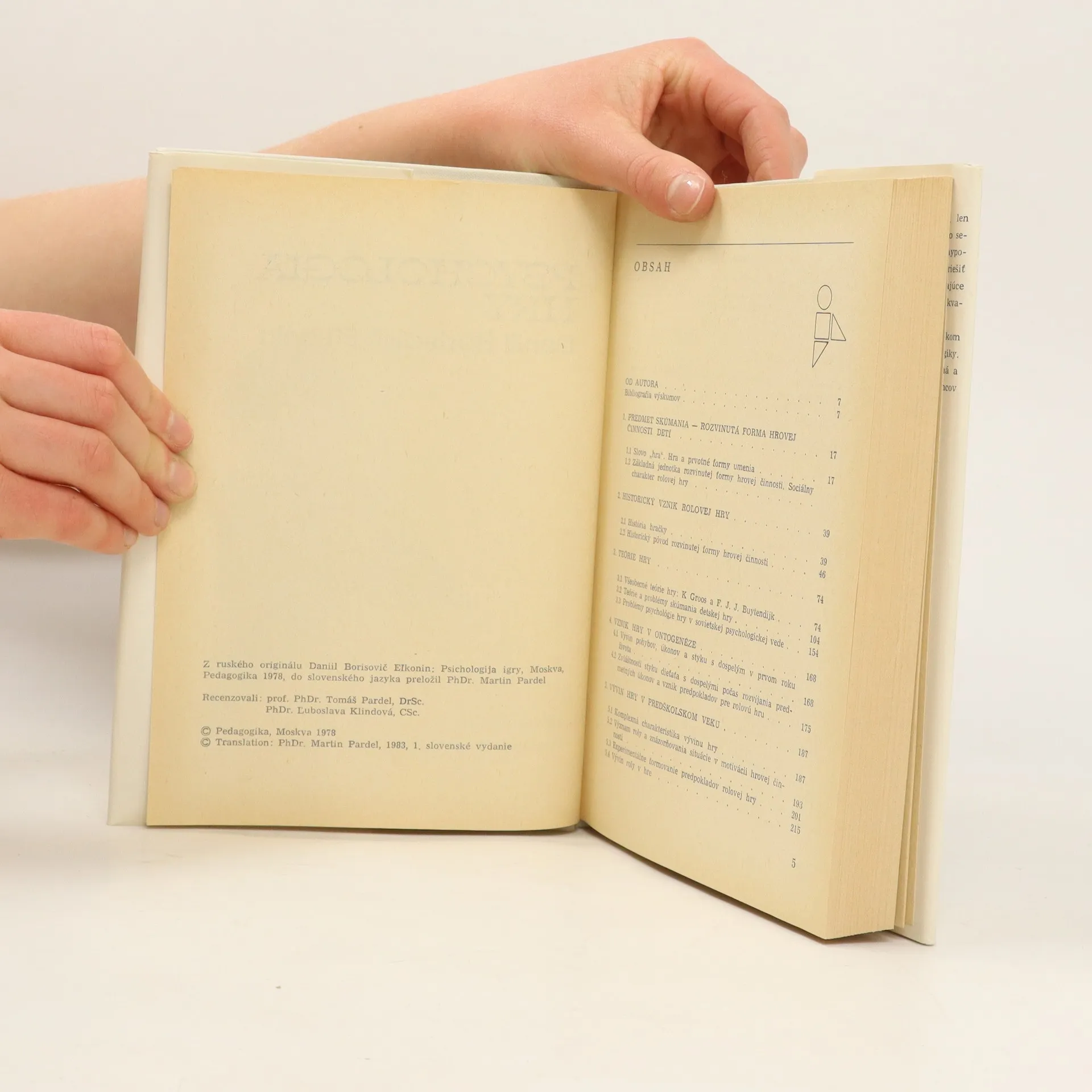 Kniha, do ktorej autor zahrnul viac ako 50-ročné skúsenosti a poznatky z experimentálneho a teoretického výskumu týkajúceho sa psychológie hry. "Je to vzácne rozsiahla zbierka, konfrontácia a polemika úvah, názorov a metodických prístupov o historickom vzniku a vývine rolovej hry, o jej rozvájanív predškolskom veku dieťaťa a o spätnom vplyve hry na psychický vývin dieťaťa. Autor rozpracúva problematiku od najširších vonkajčích súvislostí (prezentuje všeobecné teórie hry) a cez problémy vzniku hry v ontogenéze (tvorba predpokladov pre rolovú hru) sa dostáva k riešeniu otázok napr. o význame rolovej hry, o motivácii hrovej činnosti, o vývine duševných úkonov a vôlového správania dieťaťa."