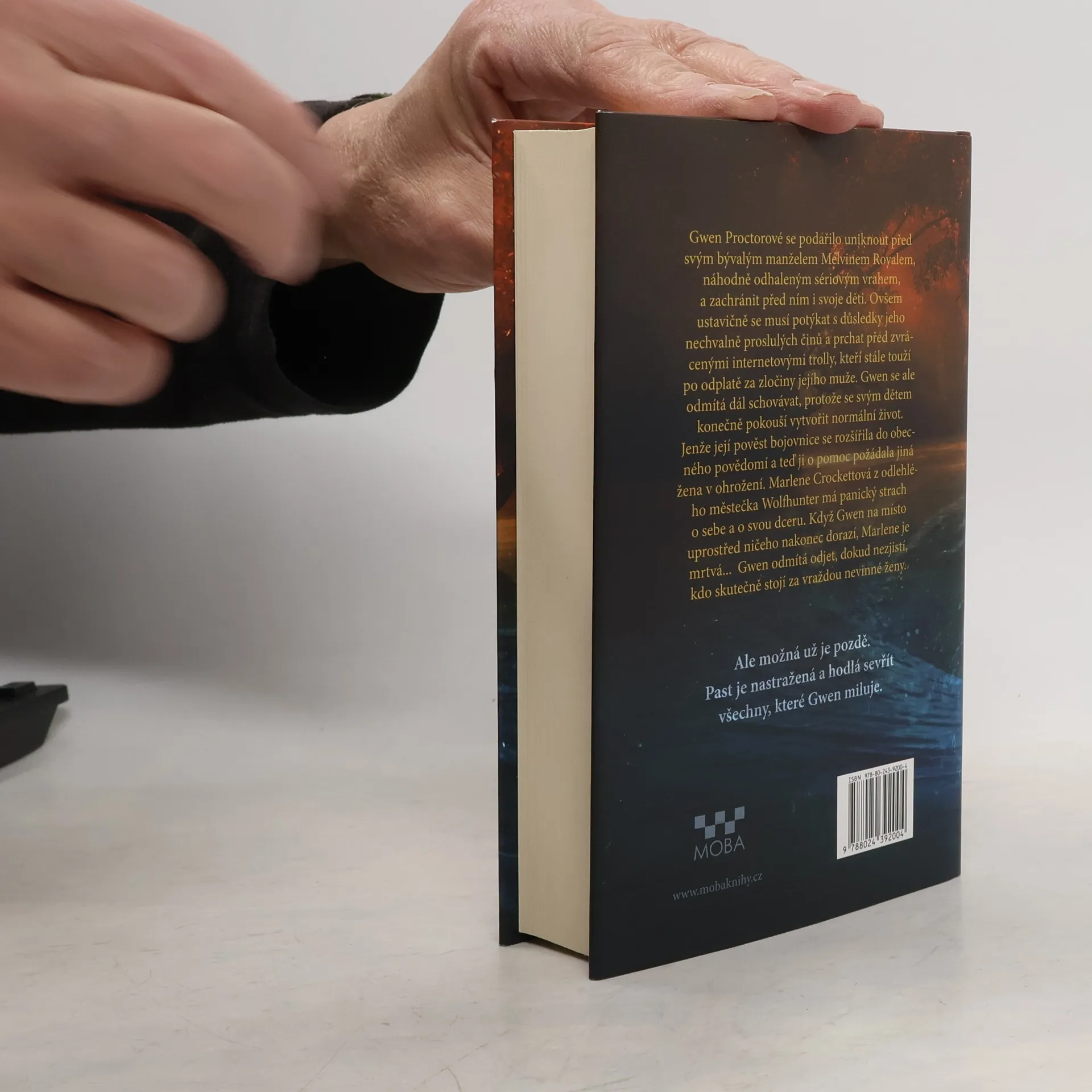Gwen Proctorová unikla bývalému manželovi a zachránila svoji rodinu. Utéct se jí ale nedaří před jeho nechvalnou proslulostí sériového vraha. Ani před zvrácenými internetovými trolly, kteří stále usilují o to, aby byly jeho zločiny pomstěny. Gwen se ale schovávat nehodlá. Ne když má jedinou misi: vytvořit svým dětem normální životní podmínky. Teď se jí však ozvala žena v ohrožení. Marlene Crickettová z odlehlého městečka Wolfhunter má panický strach o sebe a o svou dceru. Když Gwen do izolované obce na venkově dorazí, Marlene už je mrtvá – a z vraždy lidé viní její dceru. Až na to, že té se Marlene vůbec nebála. Gwen neodjede, dokud nezjistí, z koho strach měla doopravdy. Jenže teď už je možná pozdě. Past už je nastražená a chystá se sklapnout.