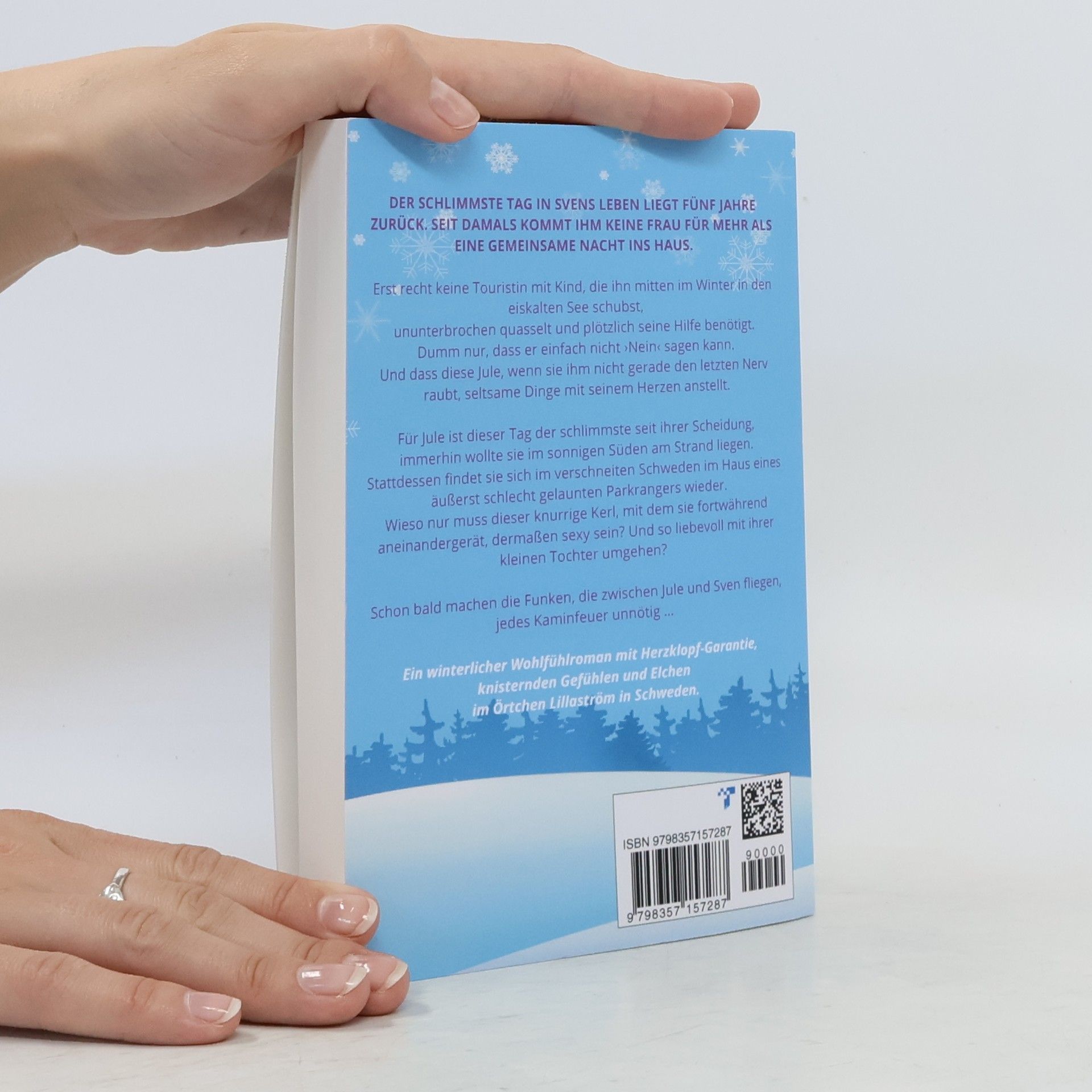 Der schlimmste Tag in Svens Leben liegt fünf Jahre zurück. Seit damals kommt ihm keine Frau für mehr als eine gemeinsame Nacht ins Haus. Erst recht keine Touristin mit Kind, die ihn mitten im Winter in den eiskalten See schubst, ununterbrochen quasselt und plötzlich seine Hilfe benötigt. Dumm nur, dass er einfach nicht ›Nein‹ sagen kann. Und dass diese Jule, wenn sie ihm nicht gerade den letzten Nerv raubt, seltsame Dinge mit seinem Herzen anstellt. Für Jule ist dieser Tag der schlimmste seit ihrer Scheidung, immerhin wollte sie im sonnigen Süden am Strand liegen. Stattdessen findet sie sich im verschneiten Schweden im Haus eines äußerst schlecht gelaunten Parkrangers wieder. Wieso nur muss dieser knurrige Kerl, mit dem sie fortwährend aneinandergerät, dermaßen sexy sein? Und so liebevoll mit ihrer kleinen Tochter umgehen? Schon bald machen die Funken, die zwischen Jule und Sven fliegen, jedes Kaminfeuer unnötig … Ein winterlicher Wohlfühlroman mit Herzklopf-Garantie, knisternden Gefühlen und Elchen im Örtchen Lillaström in Schweden. Dies ist der erste Band der „Liebe in Schweden“-Reihe. Alle Bände sind in sich geschlossen und unabhängig voneinander lesbar.