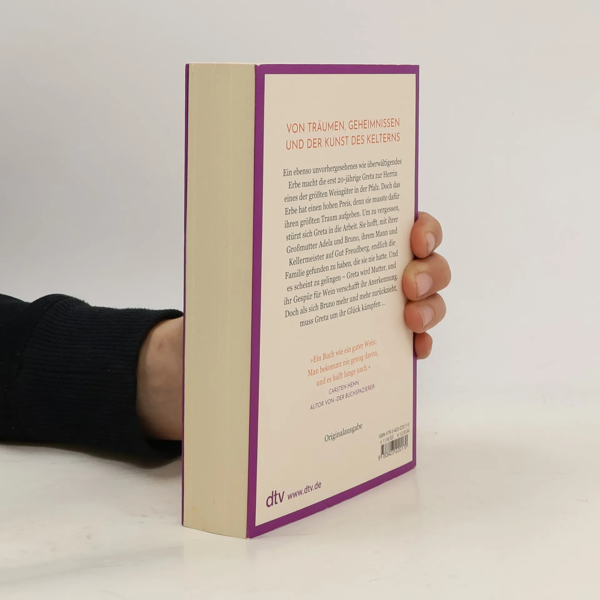 Von der Halbwaise zur erfolgreichen Winzerin Greta kommt der Bedingung nach, die ihr Vater Fritz Freudberg in seinem Testament gestellt hat: Sie heiratet dessen Kellermeister Bruno Bachstern und erbt so – mit nur 20 Jahren – das größte Weingut in der Pfalz. Diese Ehe bietet ihr nach ihrer schweren Jugend als Ziehkind in der Winzerfamilie Hellert die Chance auf ein Zuhause und eine eigene Familie. Greta und Bruno eint die Liebe zu den Weinbergen und der Kunst des Kelterns. Das Glück scheint perfekt, als der kleine Leo zur Welt kommt. Doch je erfolgreicher Greta als Winzerin wird, desto mehr distanziert sich Bruno von ihr. Als der lebenslustige Student Henry Tailor aus Südafrika Erntehelfer auf dem Gut wird, trifft Greta eine schicksalhafte Entscheidung …