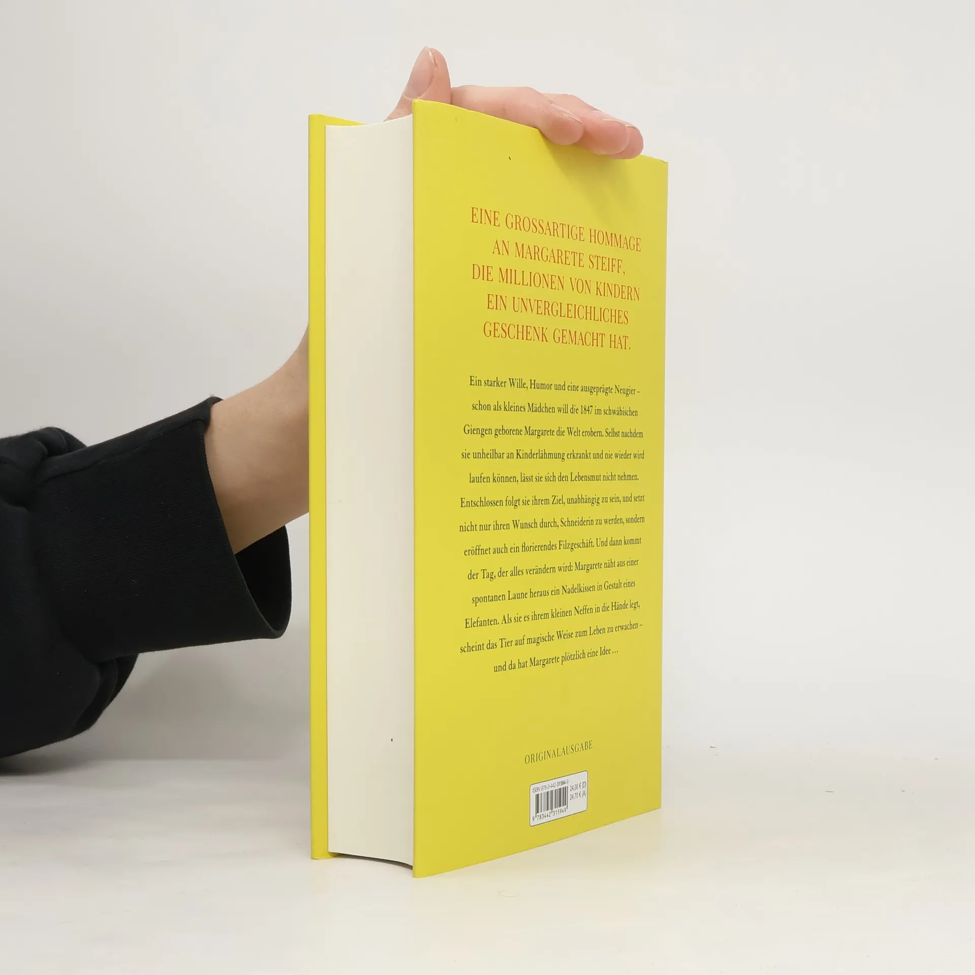Ein starker Wille, Humor und eine ausgeprägte Neugier – schon als kleines Mädchen will die 1847 im schwäbischen Giengen geborene Margarete die Welt erobern. Selbst nachdem sie unheilbar an Kinderlähmung erkrankt und nie wieder wird laufen können, lässt sie sich den Lebensmut nicht nehmen. Entschlossen folgt sie ihrem Ziel, unabhängig zu sein, und setzt nicht nur ihren Wunsch durch, Schneiderin zu werden, sondern eröffnet auch ein florierendes Filzgeschäft. Und dann kommt der Tag, der alles verändern wird: Margarete näht aus einer spontanen Laune heraus ein Nadelkissen in Gestalt eines Elefanten. Als sie es ihrem kleinen Neffen in die Hände legt, scheint das Tier auf magische Weise zum Leben zu erwachen - und da hat Margarete plötzlich eine Idee …
