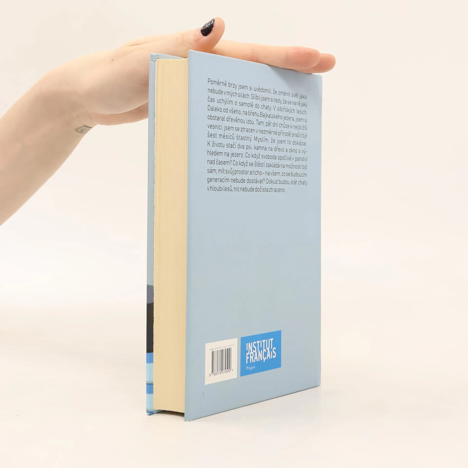 Poměrně brzy jsem si uvědomil, že změnit svět tak nějak nebude v mých silách. Slíbil jsem si tedy, že se na nějaký čas uchýlím o samotě do chaty. V sibiřských lesích. Daleko od všeho, na břehu Bajkalského jezera, jsem si obstaral dřevěnou izbu. Tam, pět dní chůze k nejbližší vesnici, jsem se ztracen v nezměrné přírodě snažil být šest měsíců šťastný. Myslím, že jsem to dokázal. K životu stačí dva psi, kamna na dřevo a okno s výhledem na jezero. Co když svoboda spočívá v panství nad časem? Co když se štěstí zakládá na možnosti být sám, mít svůj prostor a ticho – na všem, co se budoucím generacím nebude dostávat? Dokud budou stát chaty v hloubi lesů, nic nebude dočista ztraceno.