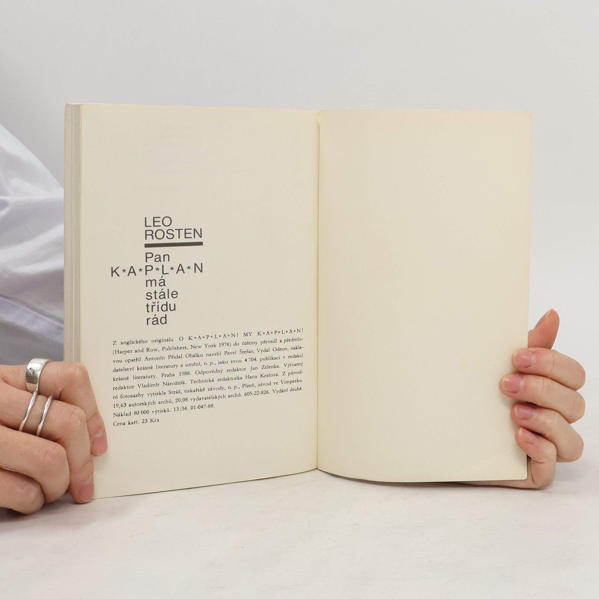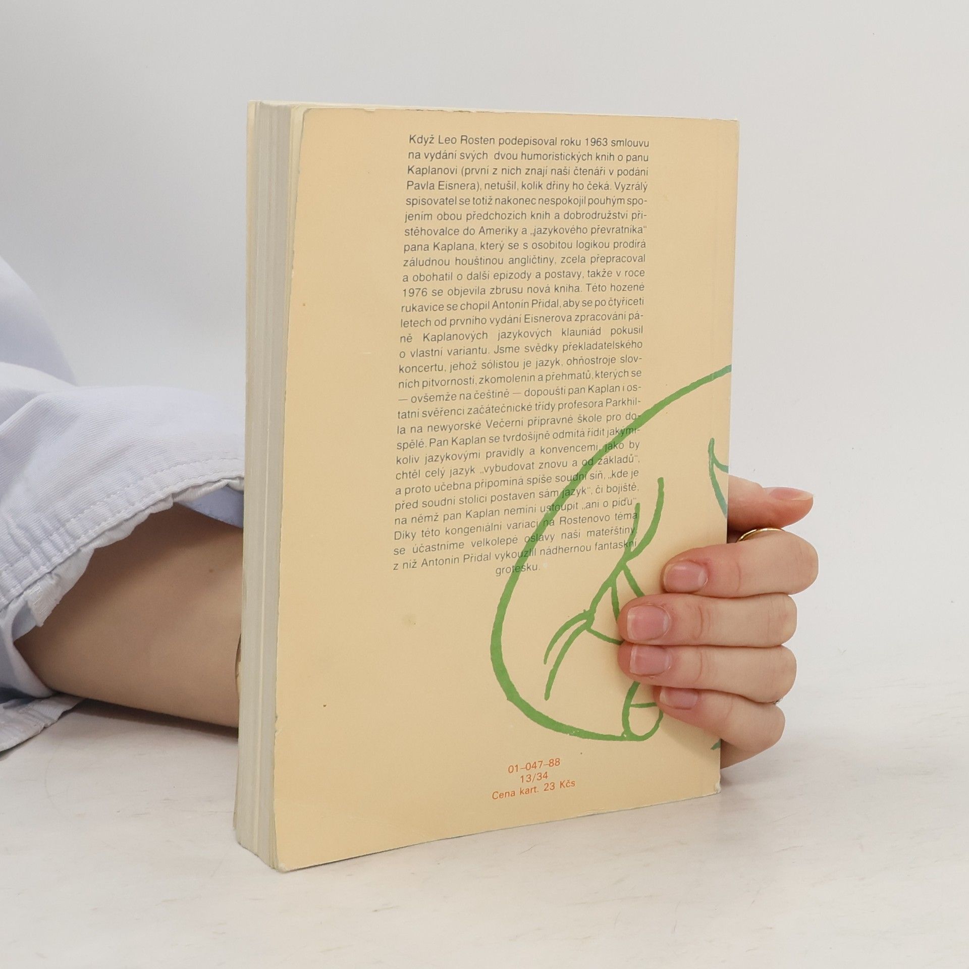 Když Leo Rosten podepisoval roku 1963 smlouvu na vydání svých dvou humoristických knih o panu Kaplanovi (první z nich znají naši čtenáři v podání Pavla Eisnera), netušil, kolik dřiny ho čeká. Vyzrálý spisovatel se totiž nakonec nespokojil pouhým spojením obou předchozích knih a dobrodružství přistěhovalce do Ameriky a „jazykového převratníka“ pana Kaplana, který se s osobitou logikou prodírá záludnou houštinou angličtiny, zcela přepracoval a obohatil o další epizody a postavy, takže v roce 1976 se objevila zbrusu nová kniha. Této hozené rukavice se chopil Antonín Přidal, aby se po čtyřiceti letech od prvního vydání Eisnerova zpracování páně Kaplanových jazykových klauniád pokusil o vlastní variantu. Jsme svědky překladatelského koncertu, jehož sólistou je jazyk, ohňostroje slovních pitvorností, zkomolenin a přehmatů, kterých se — ovšemže na češtině — dopouští pan Kaplan i ostatní svěřenci začátečnické třídy profesora Parkhilla na newyorské Večerní přípravné škole pro dospělé. Pan Kaplan se tvrdošíjně odmítá řídit jakýmikoliv jazykovými pravidly a konvencemi, jako by chtěl celý jazyk „vybudovat znovu a od základů'', a proto učebna připomíná spíše soudní síň, „kde je před soudní stolici postaven sám jazyk“, či bojiště, na němž pan Kaplan nemíní ustoupit „ani o píďu“. Díky této kongeniální variaci na Rostenovo téma se účastníme velkolepé oslavy naší mateřštiny, z níž Antonín Přidal vykouzlil nádhernou fantaskní grotesku.