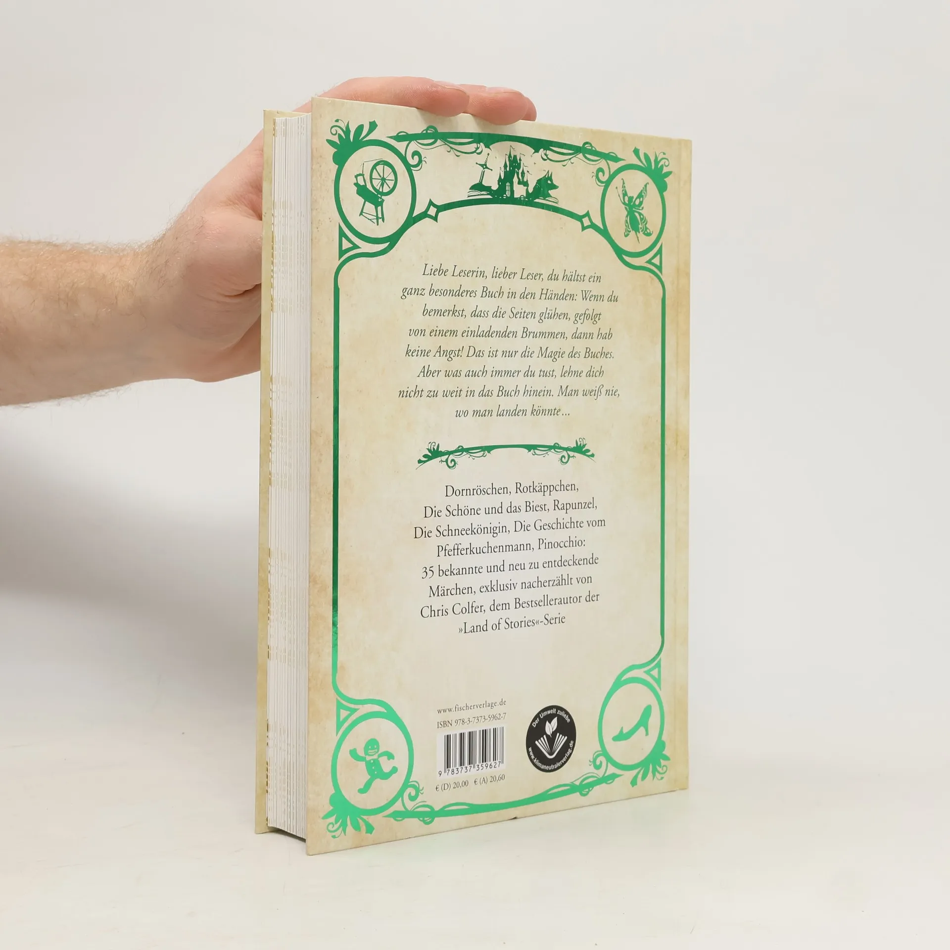 Ein Muss für alle »Land of Stories«-Fans Liebe Leserin, lieber Leser, du hältst ein ganz besonderes Buch in den Händen: Wenn du bemerkst, dass die Seiten leuchten, gefolgt von einem einladenden Brummen, dann hab keine Angst! Das ist nur die Magie des Buches. Aber was auch immer du tust, lehne dich nicht zu weit in das Buch hinein. Man weiß nie, wo man landen könnte ... Dornröschen, Rotkäppchen, Die Schöne und das Biest, Rapunzel, Die Schneekönigin, Die Geschichte vom Pfefferkuchenmann, Pinocchio: 35 bekannte und weniger bekannte Märchen, nacherzählt von Chris Colfer, dem Bestsellerautor der »Land of Stories«-Serie. Prachtvoll ausgestattet mit bunten Illustrationen von Brandon Dorman. Alle Bände der Serie »Land of Stories. Das magische Land«: Band 1: Die Suche nach dem Wunschzauber Band 2: Die Rückkehr der Zauberin Band 3: Eine düstere Warnung Band 4: Ein Königreich in Gefahr Band 5: Die Macht der Geschichten Band 6: Der Kampf der Welten