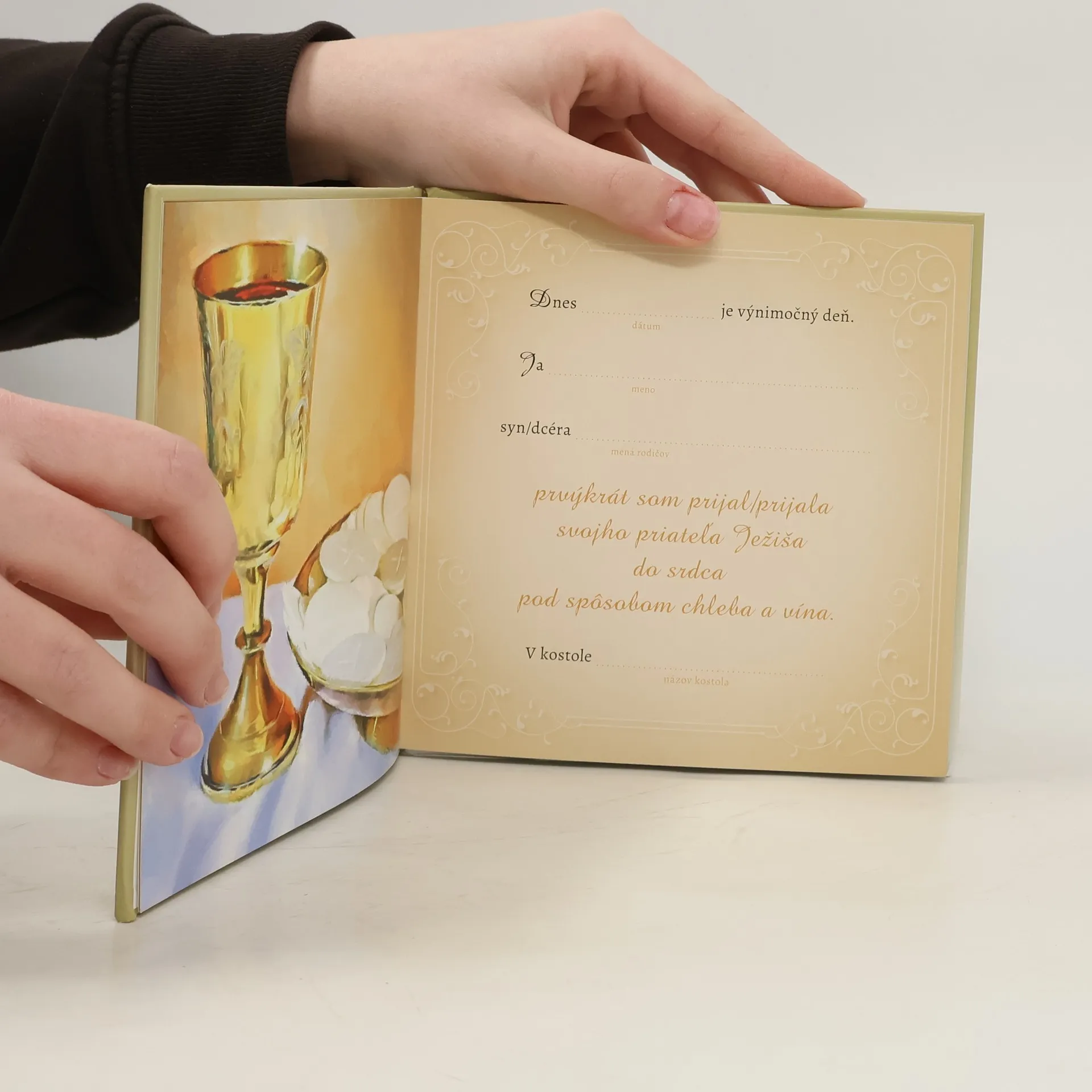 Ja som chlieb života je darčeková pamätná kniha k prvému svätému prijímaniu. Obsahuje priestor na venovanie a napísanie mena prvoprijímajúceho, dátumu a miesta konania prvého svätého prijímania. Má 27 veľmi pekne ilustrovaných strán. Každá dvojstránka obsahuje na jednej strane modlitbu alebo citát a na druhej strane tématický obrázok. Nájdeme v nej: citát z evanjelia podľa Jána znenie štvrtej eucharistickej modlitby desatoro Božích prikázaní modlitbu k anjelovi strážcovi modlitbu Pána - Otče náš apoštolské vyznanie viery - Verím v Boha modlitbu za rodičov žalm 23 modlitbu ľútosti modlitbu pred a po svätom prijímaní priestor na zaznamenanie 9 prvých piatkov