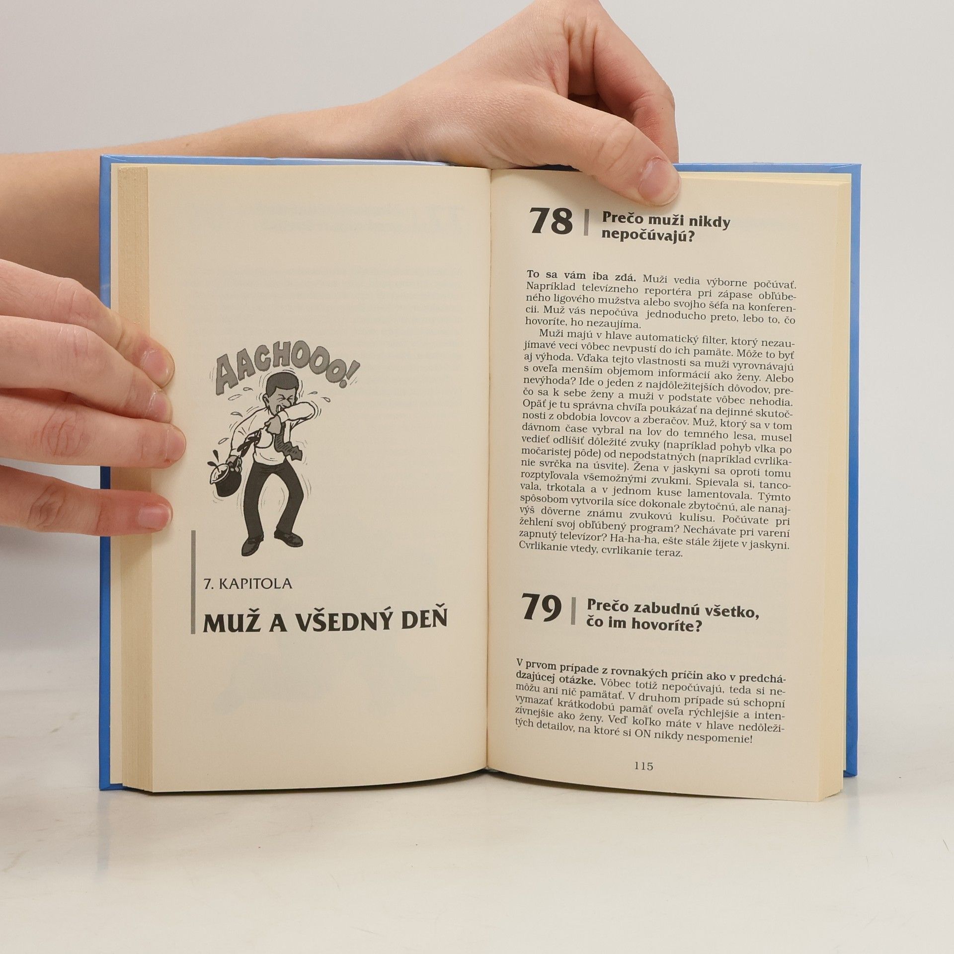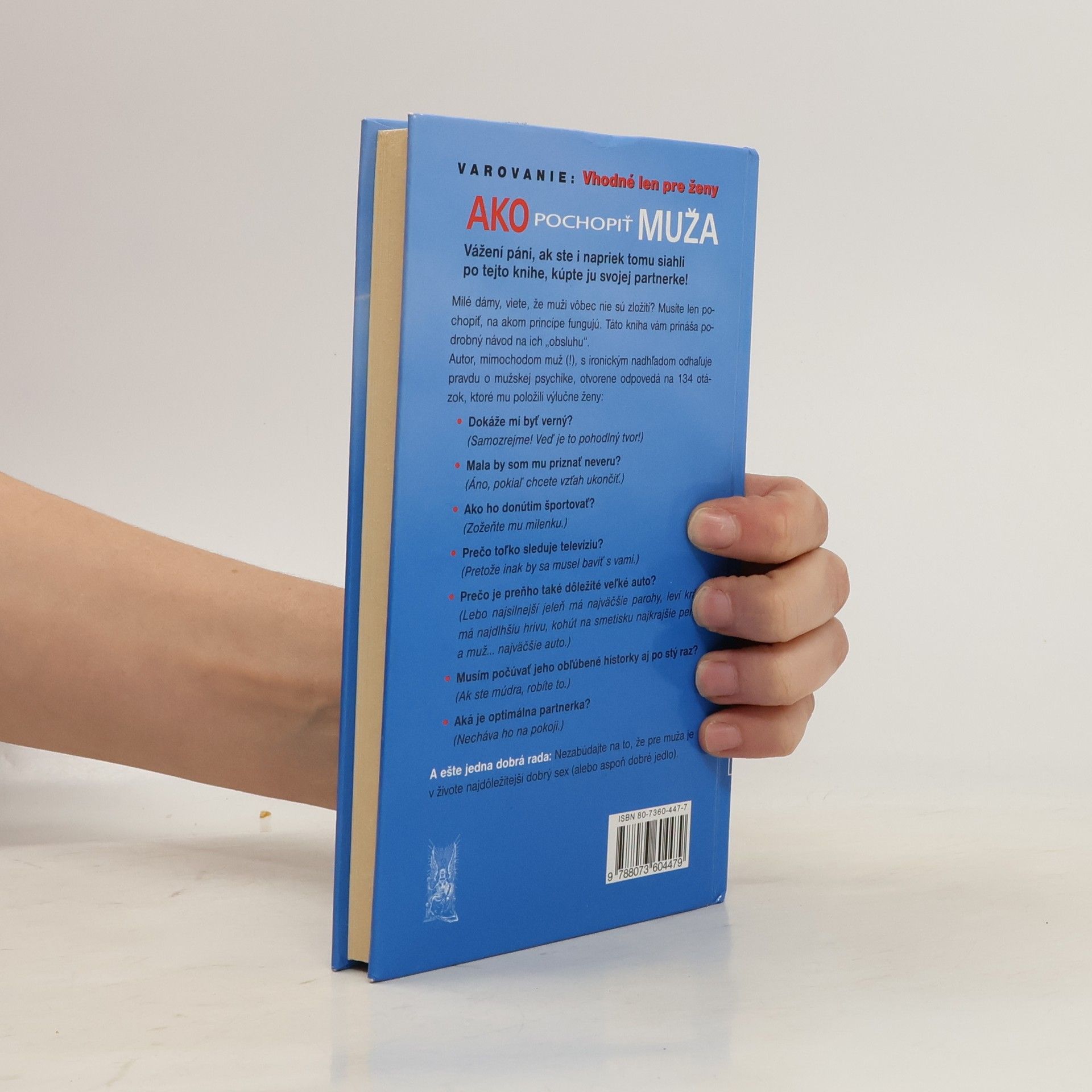 Milé dámy, viete, že muži vôbec nie sú zložití? Musíte len pochopiť, na akom princípe fungujú. Táto kniha vám prináša podrobný návod na ich "obsluhu". Autor, mimochodom muž (!), s ironickým nadhľadom odhaľuje pravdu o mužskej psychike, otvorene odpovedá na 134 otázok, ktoré mu položili výlučne ženy.