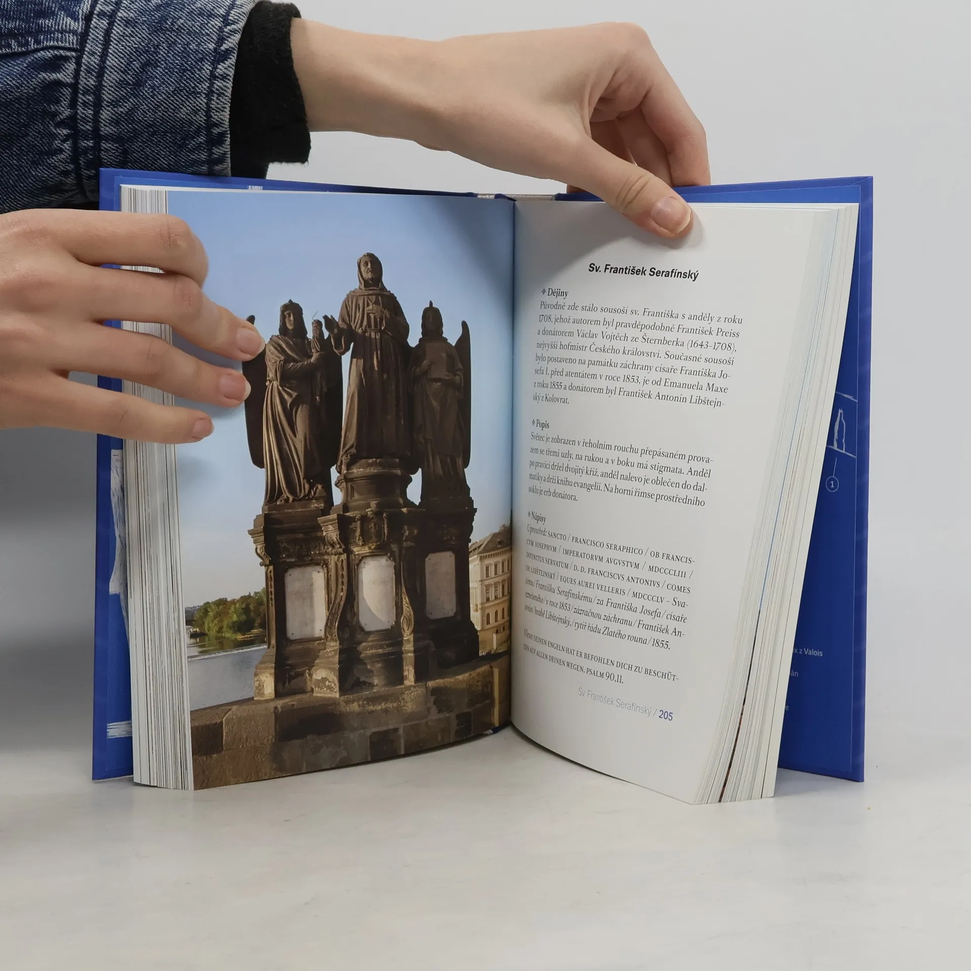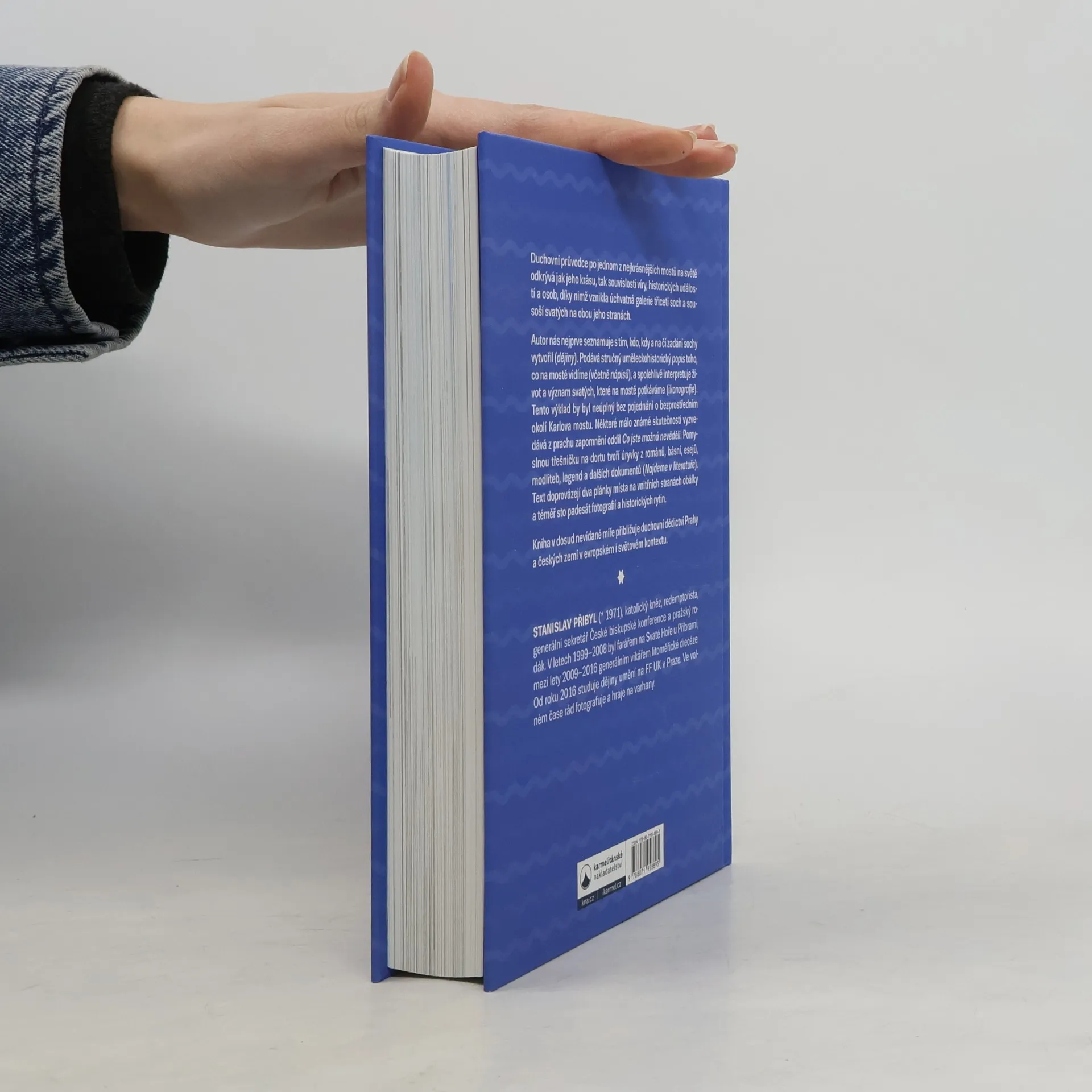 Duchovní průvodce po jednom z nejkrásnějších mostů na světě odkrývá jak jeho krásu, tak souvislosti víry, historických událostí a osob, díky nimž vznikla úchvatná galerie třiceti soch a sousoší svatých na obou jeho stranách. Autor nás nejprve seznamuje s tím, kdo, kdy a na čí zadání sochy vytvořil (dějiny). Podává stručný uměleckohistorický popis toho, co na mostě vidíme (včetně nápisů), a spolehlivě interpretuje život a význam svatých, které na mostě potkáváme (ikonografie). Tento výklad by byl neúplný bez pojednání o bezprostředním okolí Karlova mostu. Některé málo známé skutečnosti vyzvedává z prachu zapomnění oddíl Co jste možná nevěděli. Pomyslnou třešničku na dortu tvoří úryvky z románů, básní, esejů, modliteb, legend a dalších dokumentů (Najdeme v literatuře). Text doprovázejí dva plánky místa na vnitřních stranách obálky a téměř sto padesát fotografií a historických rytin. Kniha v dosud nevídané míře přibližuje duchovní dědictví Prahy a českých zemí v evropském i světovém kontextu.