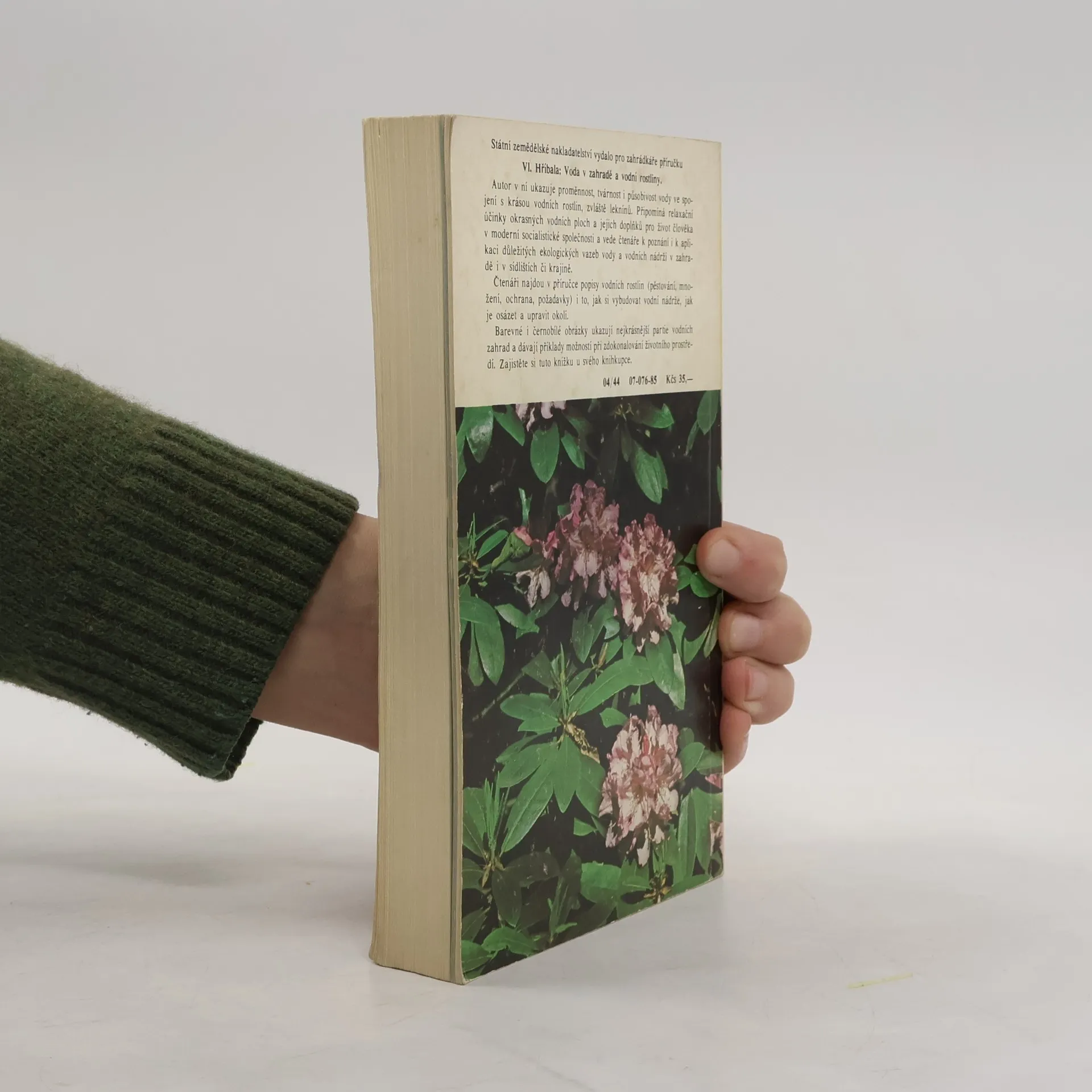 Kniha vhodná zejména pro zakladatele okrasných zahrad. Autor v ní ukazuje proměnnost, tvárnost i působivost vody ve spojení s krásou vodních rostlin, zvláště leknínů. Připomíná relaxační účinky okrasných vodních ploch a jejich doplňků pro život člověka a vede čtenáře k poznání i kapliaci důležitých ekologických vazeb vody a vodních nádrží v zahradě. První vydání. Cena knihy v čase vydání: 35.- Kčs.