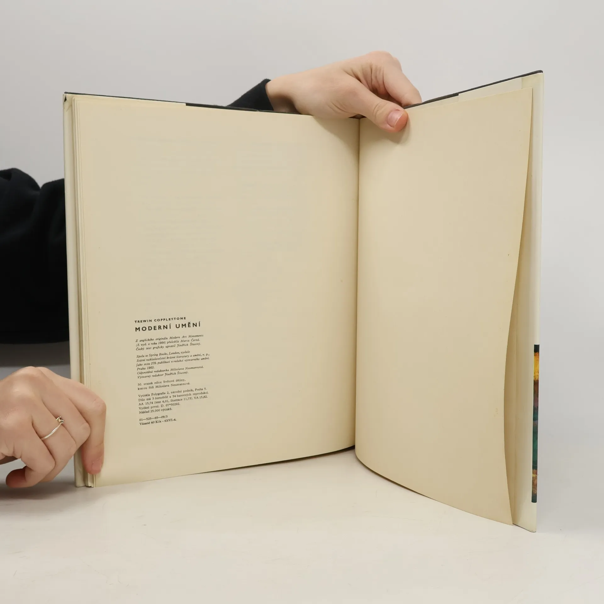 V knize se zabývá anglický malíř, sochař a kritik šesti významnými malířskými školami z prvních třiceti let 20. století. V pojednání o fauvismu, kubismu, expresionismu, futurismu, De Stijlu a surrealismu uvádí nejprve hlavní představitele a reprodukce jejich děl, vysvětluje malířské znaky, původ názvu a dále vznik, vývoj a podstatu toho kterého uměleckého směru. V úvodní části podává výklad o podstatě moderního malířství a vlastního procesu umělecké tvorby. 44 s., 54 s. obr. příl. Spoluvyd. nakl. Spring Books a Paul Hamlyn v Londýně. Na frontispice faksimile podpisů výtvarníků.
