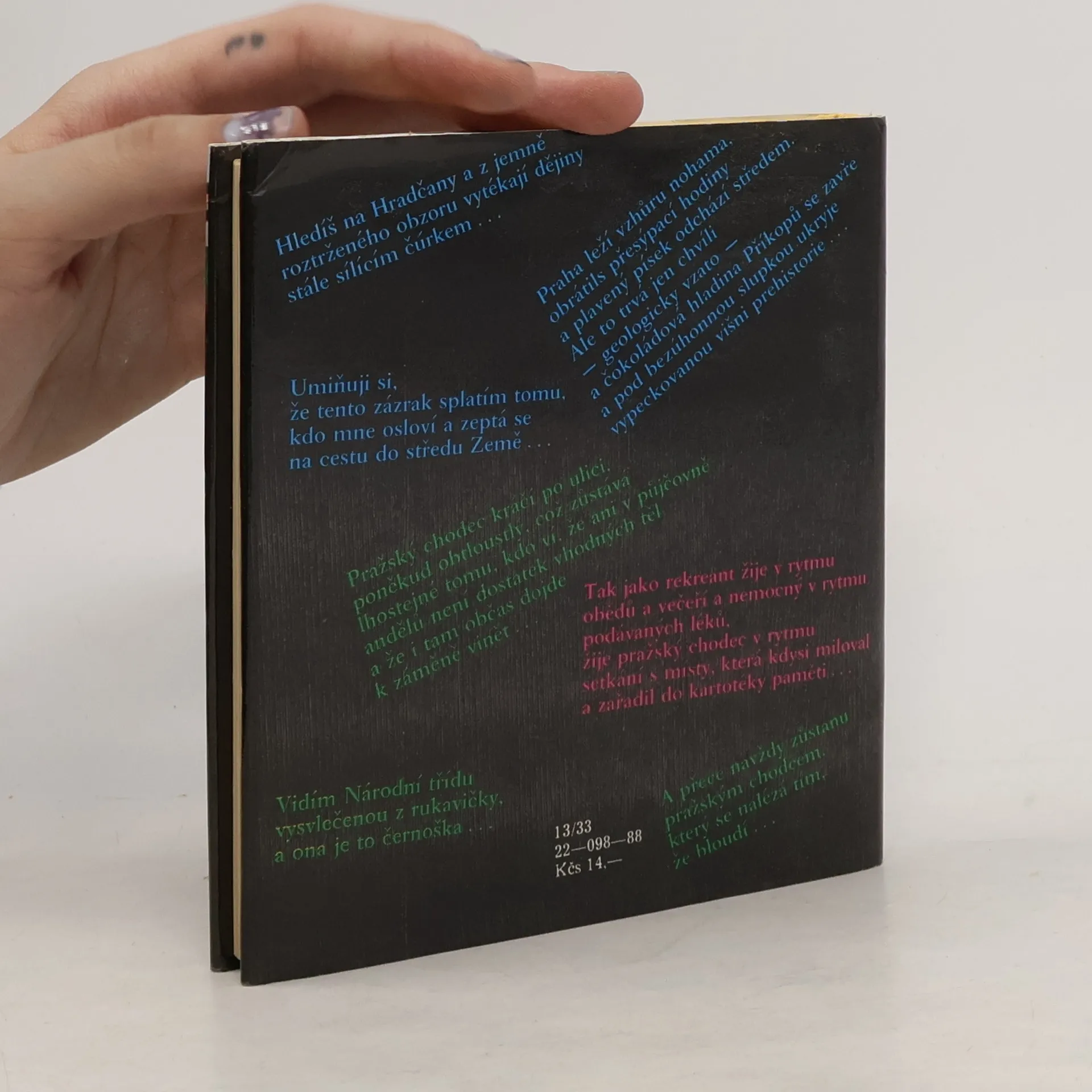 Mozaika pohledů, vzpomínek, asociací a postřehů je osobitým vyznáním obdivu a lásky k Praze, zároveň však také holdem V. Nezvalovi a jeho dílu.
