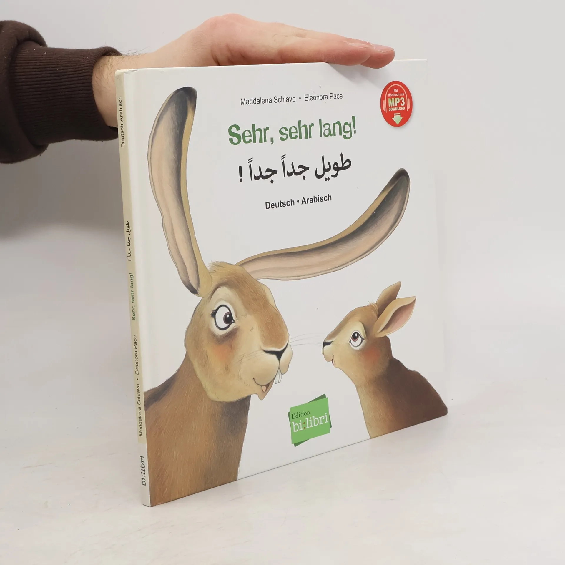 Zweisprachiges Kinderbuch Deutsch-Arabisch ab 3 Jahren Eltern sind immer für ihre Kinder da. Mit langen Beinen, um schnell da zu sein oder mit langen Ohren, um jedes einzelne Wort zu verstehen. Und auch Kinder sind für ihre Eltern da, auf ihre ganz eigene Weise … Für weitere Sprachen erhältlich.