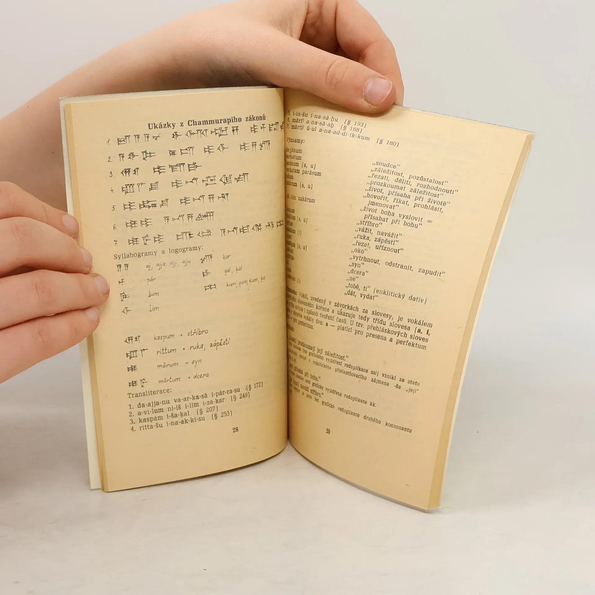Příručka o vývoji klínového písma a o základech babylónštiny má podat čtenáři první a základní informace o úskalích, které dodnes představuje studium klínopisných památek, a seznámit ho s obtížemi, jež musili překlenout písaři sumerští, babylónští a chetitští. Učebnice má dvě části. První se zaměřuje na otázky vývoje a především systému klínového písma. Ve druhé části je položen důraz na úvod do četby ukázek starobabylónských textů (např. Chammurapiho zákony) a tím i na výklady o babylónštině.
