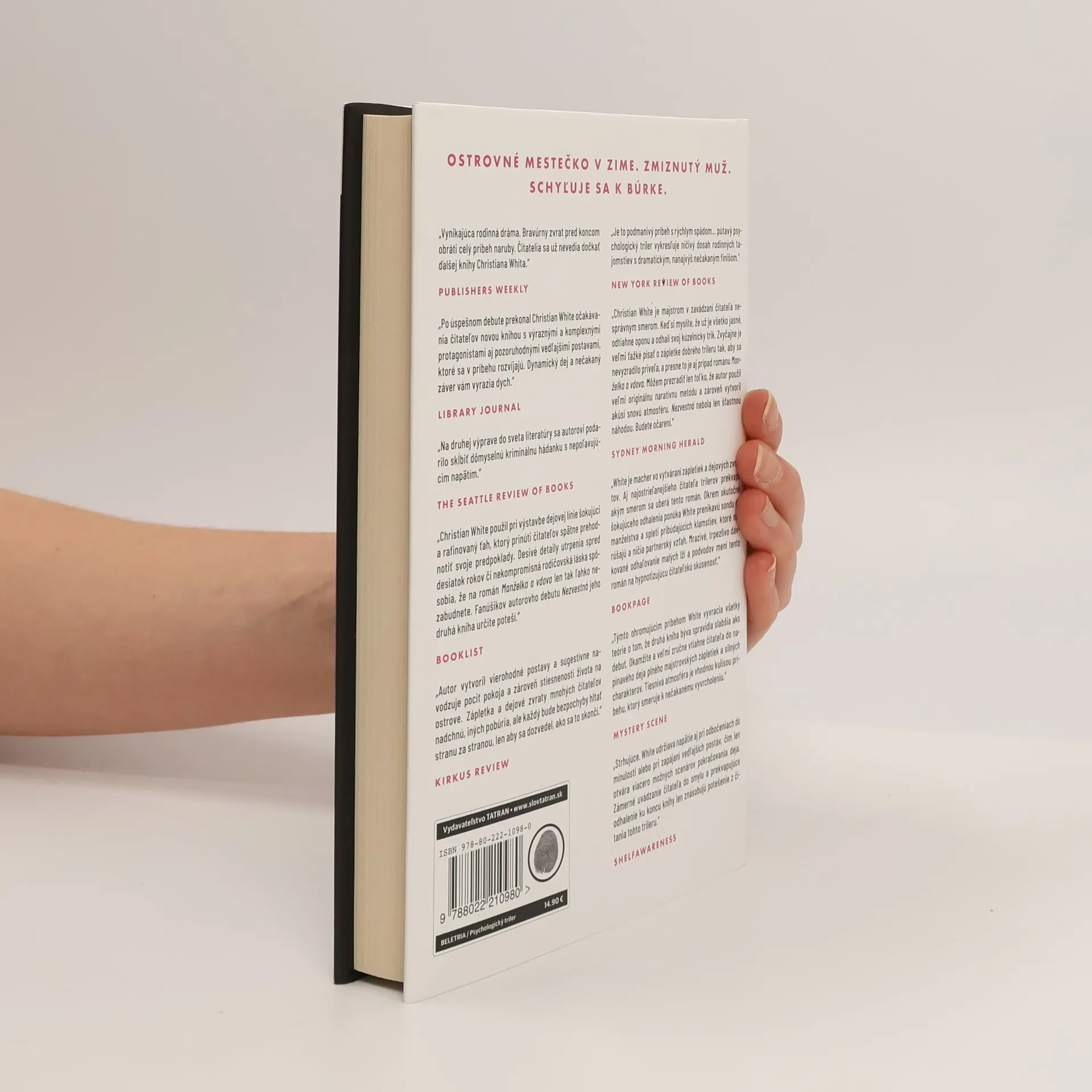 Príbeh Christiana Whita sa odohráva v opustenom austrálskom letovisku na ostrove Belport počas zimy. Vdova Kate a manželka Abby prežívajú paralelné príbehy, kde sa zdá, že ich osudy sú nezlučiteľné, no postupne sa prelínajú a vedú k dramatickému stretnutiu, pri ktorom si navzájom zachraňujú rodiny. Kate, elegantná a závislá na svojom manželovi Johnovi, začne tušiť, že v ich manželstve niečo nie je v poriadku. Po jeho zmiznutí z lekárskeho sympózia v Londýne a zistení, že už tri mesiace nepracuje, si uvedomí, že žila s cudzím človekom. Na druhej strane, Abby, jednoduchá predavačka, žije spokojný život na ostrove, stará sa o svojho manžela Raya a deti, no jej záľuba v preparovaní zvierat a blízky vzťah s lesbickou priateľkou, miestnou policajtkou, naznačujú, že nie všetko je tak, ako sa zdá. Konflikty medzi mužmi a následne aj medzi Kate a Abby postupne vychádzajú na povrch. Autor majstrovsky odhaľuje kľúčové, no mätúce skutočnosti, ktoré ovplyvňujú osudy postáv. Brilantne spracovaný príbeh s napínavou atmosférou núti čitateľa zamyslieť sa nad tým, ako dobre poznáme tých, ktorých milujeme.