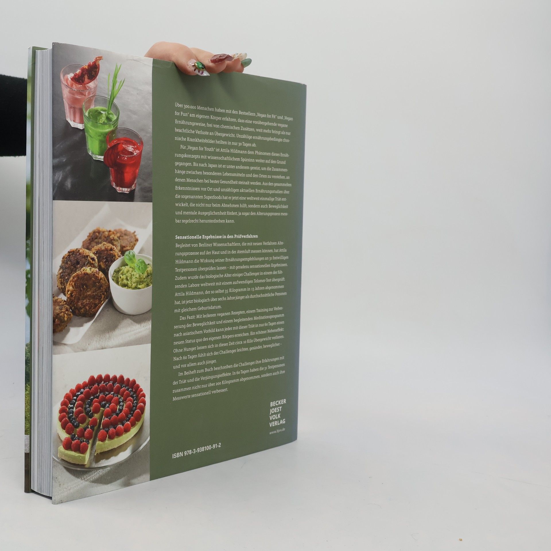 Über 100.000 Menschen haben mit den Bestsellern Vegan for Fit und Vegan for Fun erfahren, dass eine vorübergehende vegane Ernährung ohne chemische Zusätze nicht nur zu Gewichtsverlust führt, sondern auch ernährungsbedingte chronische Krankheiten in nur 30 Tagen heilen kann. In Vegan for Youth hat Attila Hildmann das Phänomen dieser Ernährung mit wissenschaftlichem Ansatz weiter untersucht. Bereits 2015 setzte er die Telomer-Messung ein, eine Methode zur Entschlüsselung des Alterns, die von Nobelpreisträgerin Elizabeth Blackburn entwickelt wurde. Zudem reiste er nach Japan, um die Zusammenhänge zwischen speziellen Lebensmitteln und der Gesundheit von Menschen, die ein hohes Alter erreichen, zu erforschen. Aus seinen Erkenntnissen über Superfoods entwickelte er eine einzigartige Triät, die Alterungsprozesse verlangsamen kann. Gemeinsam mit Wissenschaftlern der Charité in Berlin überprüfte er die Wirkung seiner Ernährungsempfehlungen. Das Ergebnis: Mit schmackhaften veganen Rezepten, einem Beweglichkeitstraining und einem asiatisch inspirierten Meditationsprogramm kann jeder in nur 60 Tagen einen neuen Körperstatus erreichen. Ein positiver Nebeneffekt: In dieser Zeit können bis zu 10 Kilo Übergewicht verloren werden. Nach 60 Tagen fühlen sich die Teilnehmer leichter, gesünder, beweglicher und jünger.
