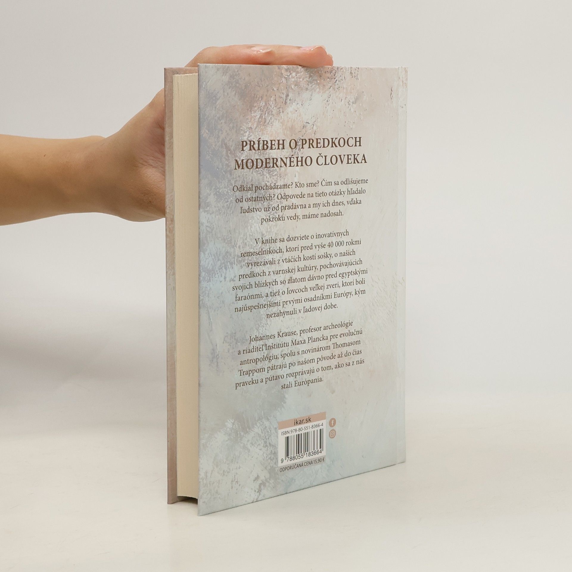 Odkiaľ pochádzame? Kto sme? Čím sa odlišujeme od ostatných? Odpovede na tieto otázky hľadalo ľudstvo už od pradávna a my ich dnes, vďaka pokroku vedy, máme nadosah. Johannes Krause, profesor archeológie a riaditeľ Inštitútu Maxa Plancka pre evolučnú antropológiu, spolu s novinárom Thomasom Trappom pátrajú po našom pôvode až do čias praveku a vo svojej knihe Putovanie našich génov: Príbeh o predkoch moderného človeka pútavo rozprávajú o tom, ako sa z nás stali Európania. Krause je priekopníkom revolučnej archeogenetiky, vedy rozšírenej o technológiu sekvenovania DNA, ktorá umožnila vedcom odhaliť novú verziu histórie ľudstva siahajúcu viac ako 100 000 rokov do minulosti. V knihe sa dozviete o inovatívnych remeselníkoch, ktorí pred viac ako 40 000 rokmi vyrezávali z vtáčích kostí sošky, o našich predkoch z varnskej kultúry, ktorí pochovávali svojich blízkych so zlatom dávno pred egyptskými faraónmi, a tiež o lovcoch veľkej zveri, ktorí boli najúspešnejšími prvými osadníkmi Európy, kým nezahynuli v ľadovej dobe. Toto poučné prerozprávanie ľudského eposu dokazuje, že prisťahovalectvo a genetické miešanie vždy určovali náš druh, no zároveň potvrdzuje, že to, kto sme, je otázkou kultúry, nie genetiky. Z nemeckého originálu Die Reise unserer Gene, vydaného vo vydavateľstve Propyläen Verlag, Berlín v roku 2020, preložila Zuzana Guldanová. Vyšlo vo vydavateľstve IKAR, a.s. v roku 2022.