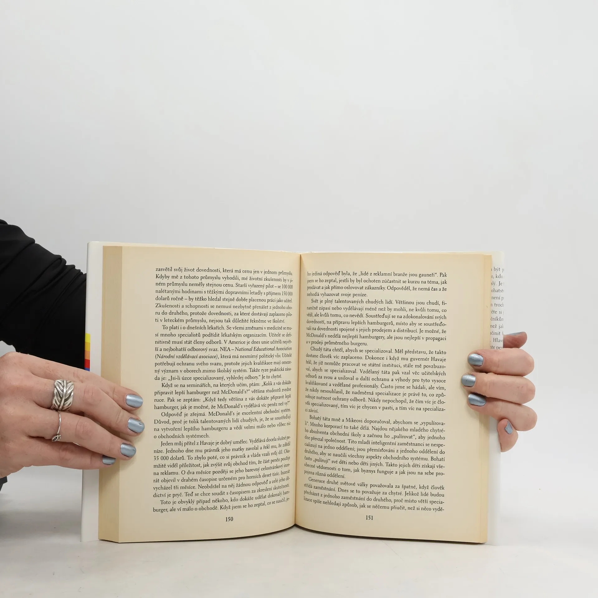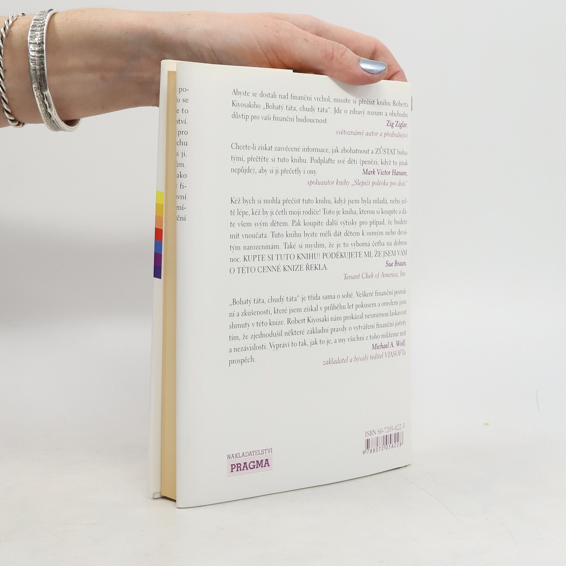 Po přečtení knihy mi došlo, že peníze nejsou všechno a že je stokrát lepší mít chudého tátu, který dítě naučí správným hodnotám, než bohatého, který ho naučí pro halíř jít přes mrtvoly. Otec autora se musí otáčet v hrobě.