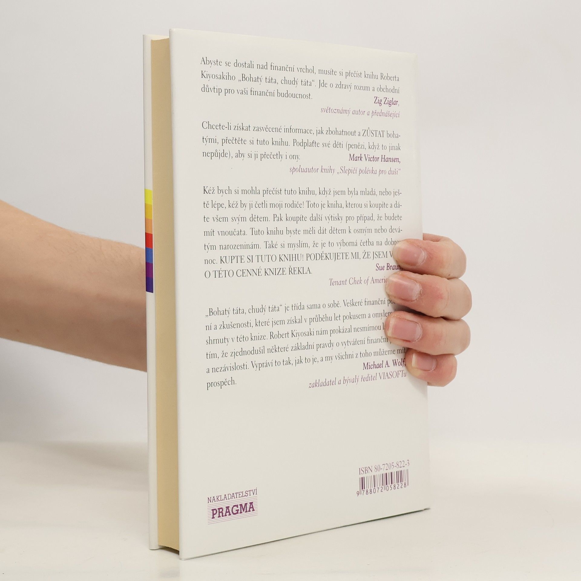 Po přečtení knihy mi došlo, že peníze nejsou všechno a že je stokrát lepší mít chudého tátu, který dítě naučí správným hodnotám, než bohatého, který ho naučí pro halíř jít přes mrtvoly. Otec autora se musí otáčet v hrobě.