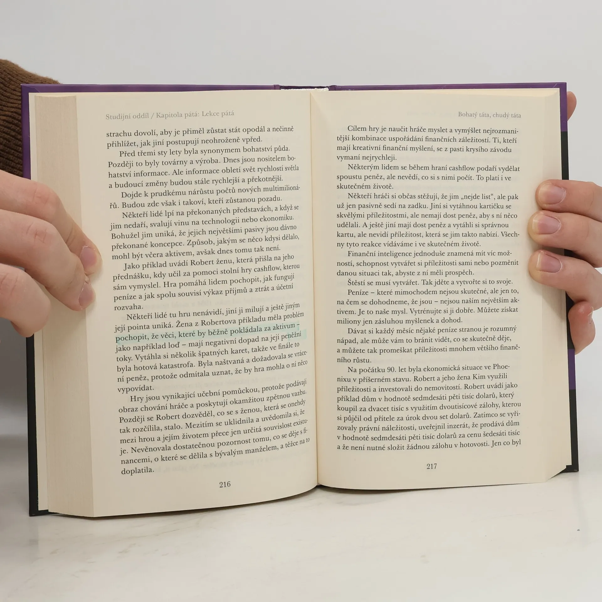 Po přečtení knihy mi došlo, že peníze nejsou všechno a že je stokrát lepší mít chudého tátu, který dítě naučí správným hodnotám, než bohatého, který ho naučí pro halíř jít přes mrtvoly. Otec autora se musí otáčet v hrobě.