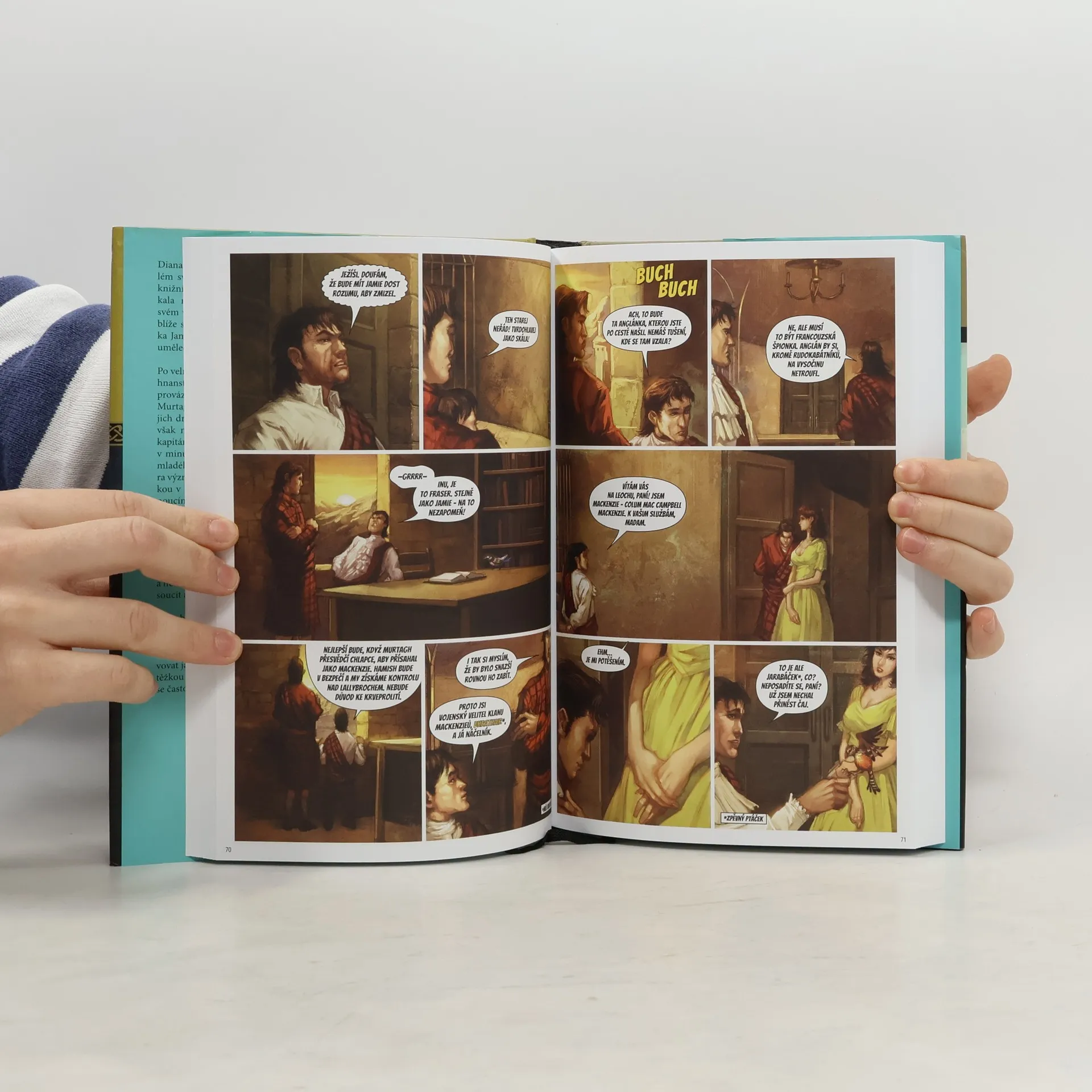 Po příliš dlouhé nepřítomnosti se Jamie Fraser vrací domů do Skotska – návrat se však neobejde bez velkých obav. Přestože jeho milovaný kmotr Murtagh slíbil Jamieho rodičům, že se o jejich impulzivního synka postará, splnit tento slib nebude jednoduché. Na hlavu mladého vyhnance je již vypsána tučná odměna, a to zásluhou kapitána Jacka Randalla, sadistického britského důstojníka, s nímž Jamie v minulosti zkřížil cestu i meč. U dvora významného klanu MacKenzieů je Jamie naopak figurkou v mocenském boji mezi svými dvěma strýci: stárnoucím náčelníkem Columem, jenž si žádá synovcovu loajalitu – nebo jeho život – a Dougalem, válečným náčelníkem klanu MacKenzieů, který by Jamieho raději sťal, než aby mu dovolil stát se Columovým dědicem. A pak je tu Claire Randallová – záhadná, svéhlavá kráska, která se objeví v Jamieho životě a rozvíří jeho soucit... a jeho chtíč. Jamieho srdce ho táhne ke Claire, avšak Murtagh je přesvědčený, že dívku sem poslali Staří a kapitán Randall ji označí za špiónku. Claire zcela zjevně něco skrývá, přestože Jamie nedokáže uvěřit, že by pro něj mohla představovat nějaké nebezpečí. I tak ale ví, že je zmítána mezi dvěma volbami – životem po jeho boku a něčím tajemným, kvůli čemu se v myšlenkách často ocitá jinde. Vstupte do poutavého, vášnivého a napínavého světa Vyhnanství a vychutnejte si mimořádnou vypravěčskou magii Diany Gabaldon.