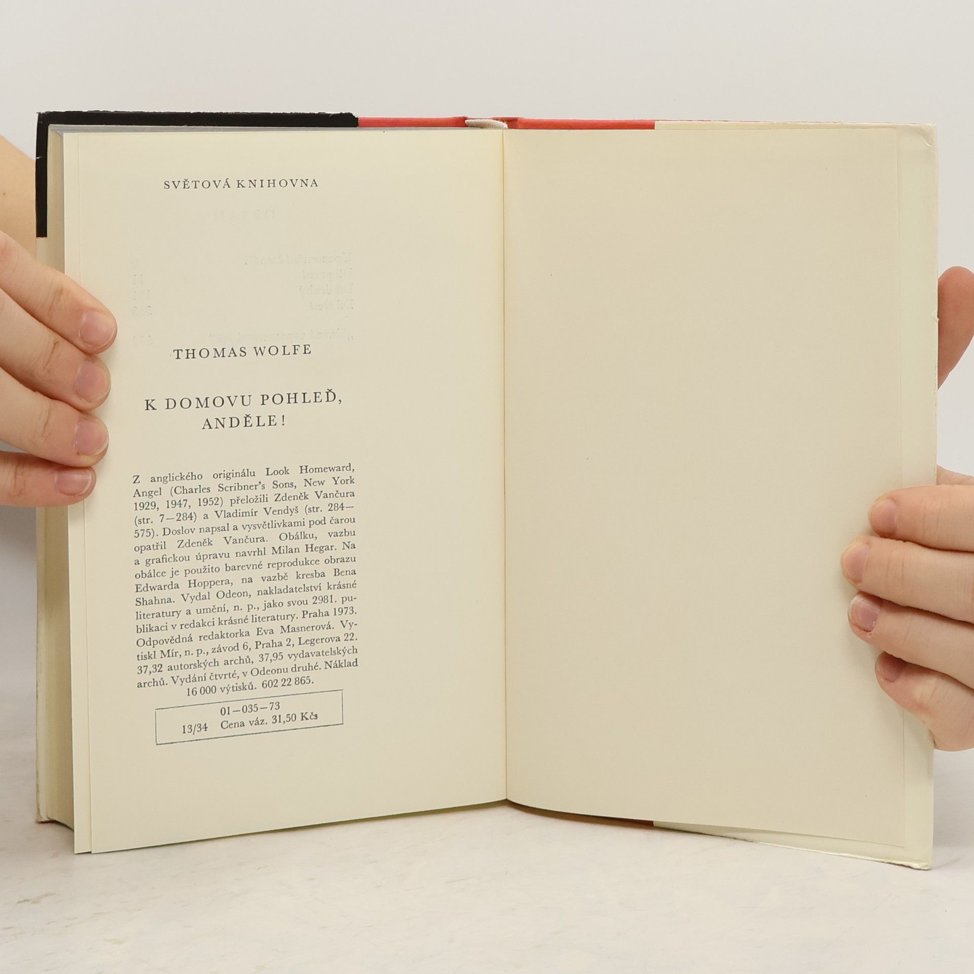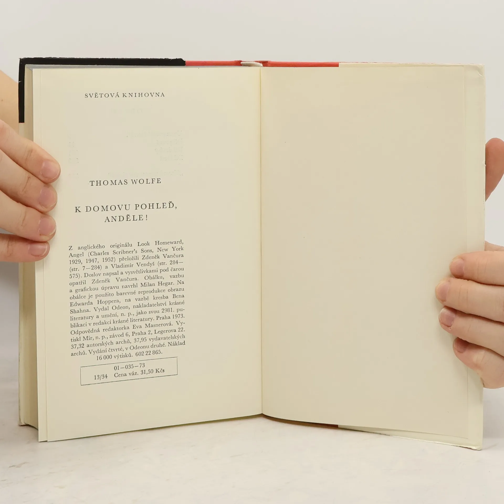 K domovu pohleď, anděle!, Thomas Clayton Wolfe, Zdeněk Vančura, Vladimír Vendyš