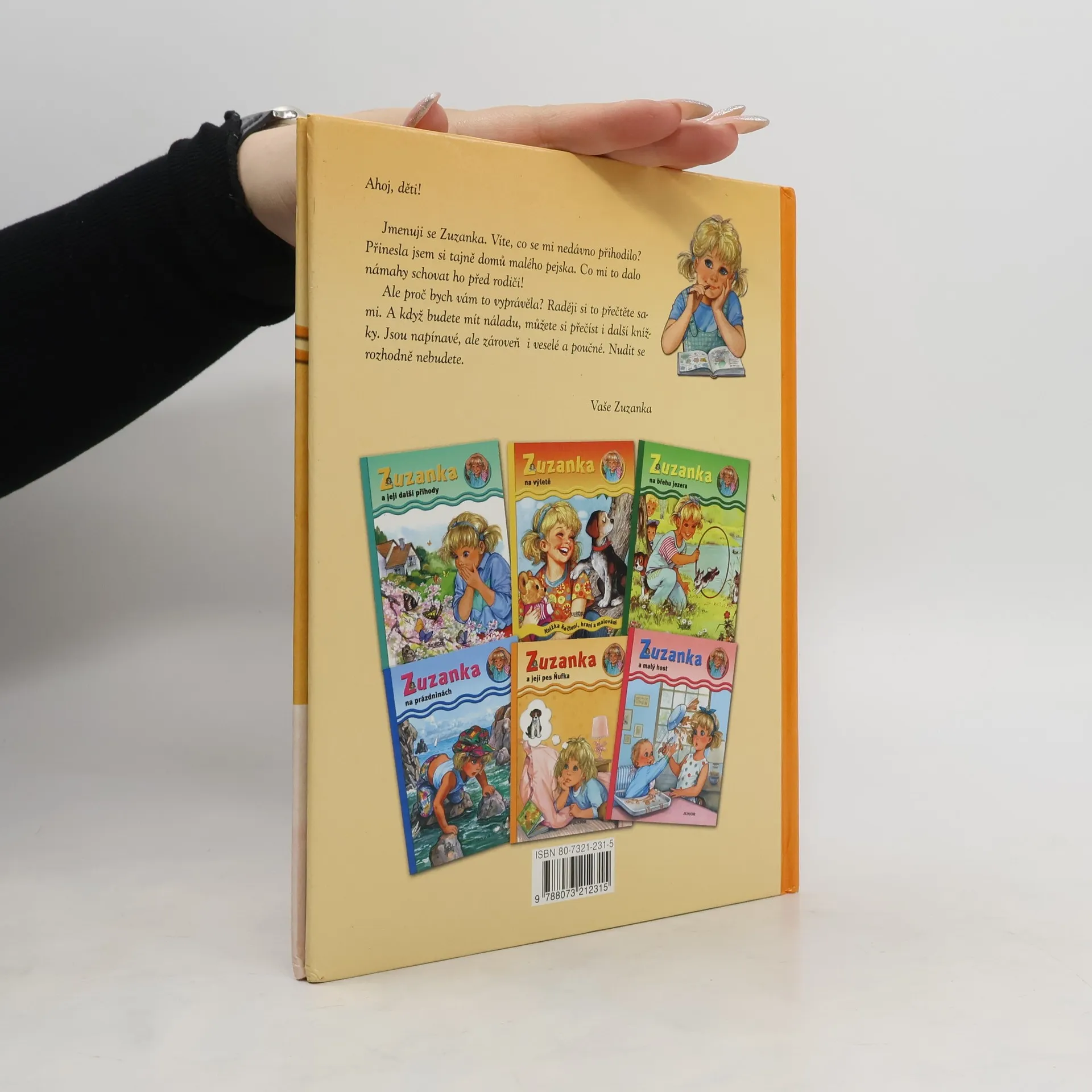 Ahoj děti! Jmenuji se Zuzanka. Víte, co se mi nedávno přihodilo? Přinesla jsem si tajně domů malého pejska. Co mi to dalo námahy schovat ho před rodiči! Obsahuje povídky: - Zuzanka a její pes Ňufka - Zuzanka u strejdy Fandy - Zuzanka na břehu jezera - Zuzanka na trhu - Zuzanka se stěhuje -Zuzanka u kolotočů